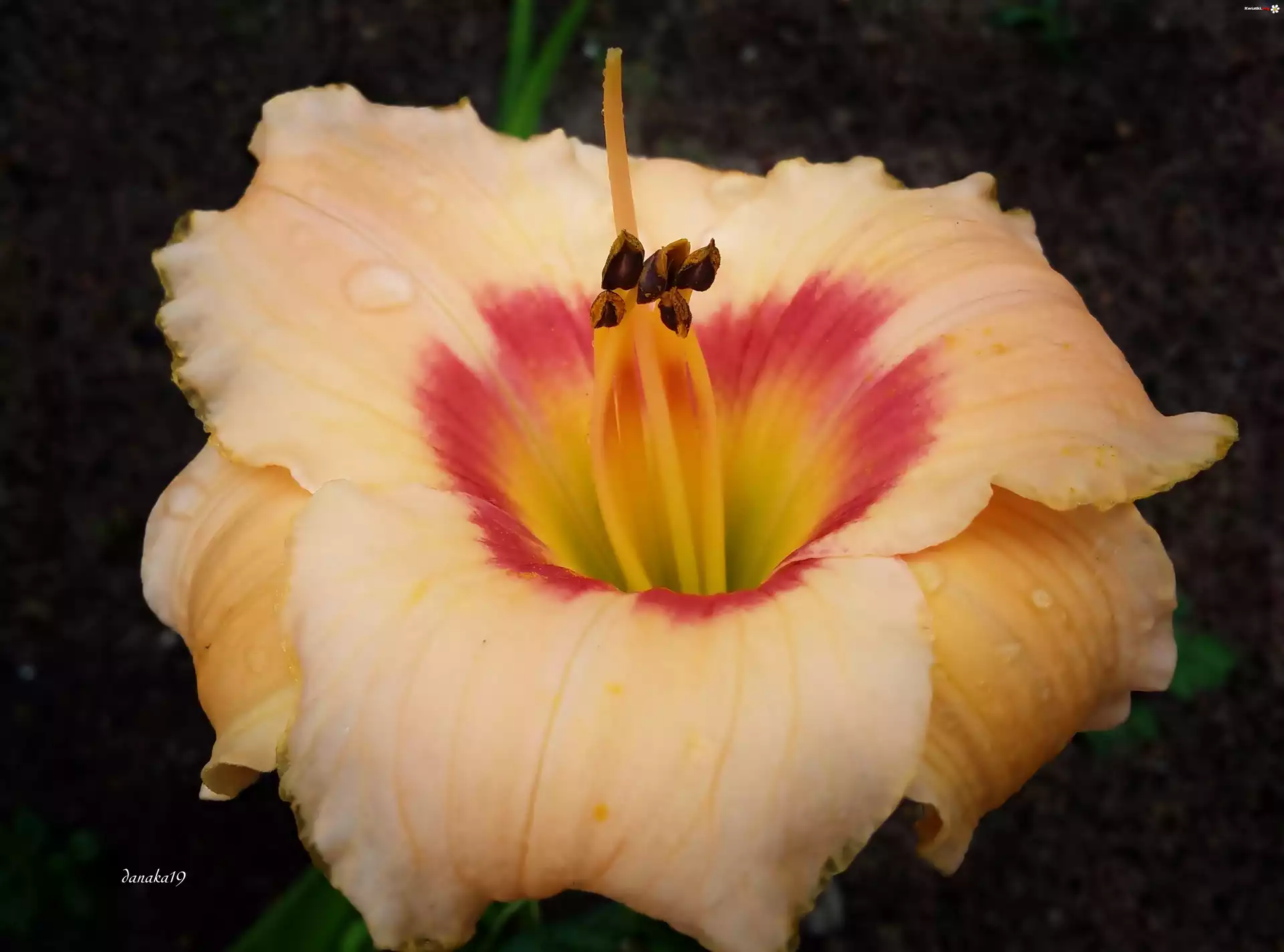 Kwiat Kremowy, Liliowiec, Czerwony, Środek, Krople