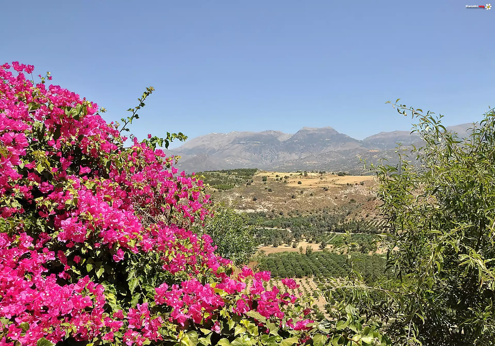 Kwiat Kreta, Góry, Pola, Kwitnąca, Bugenwilla