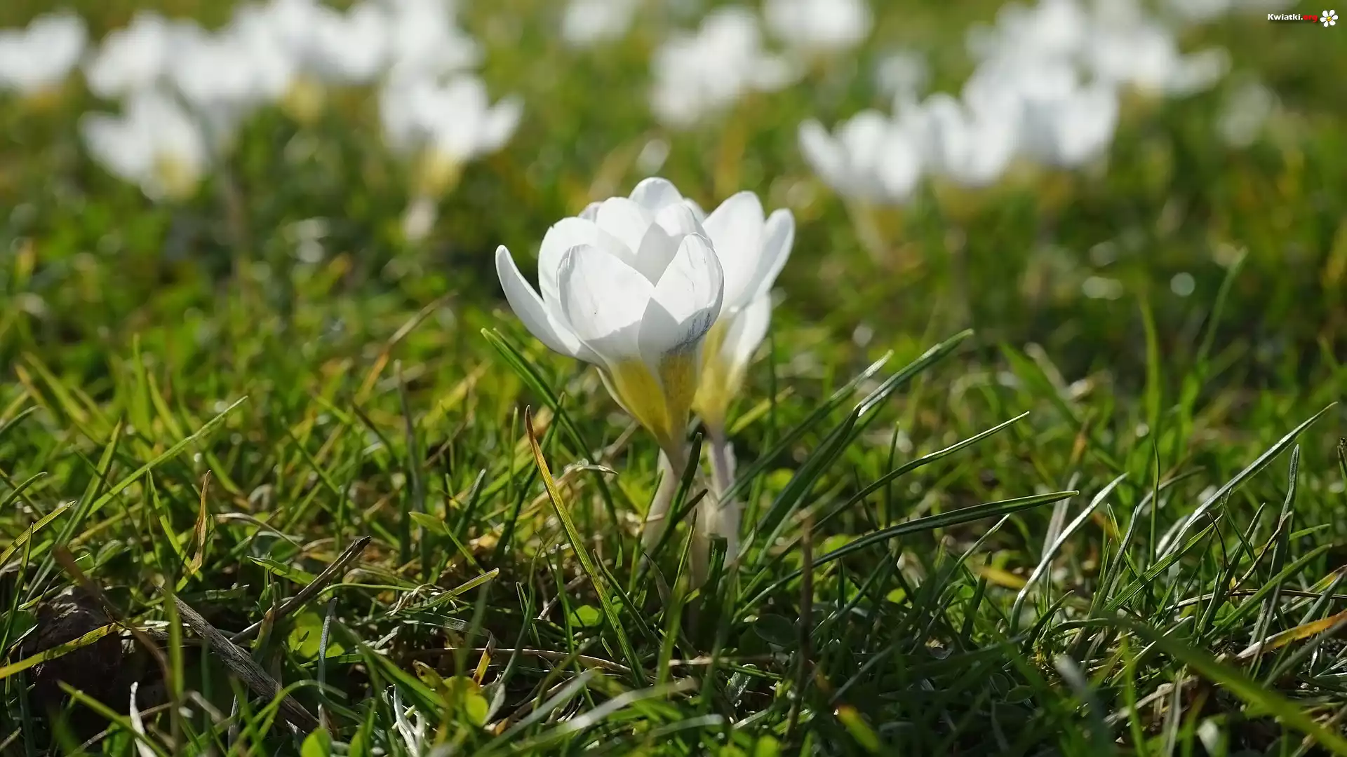 Kwiat Białe, Krokusy, Trawa
