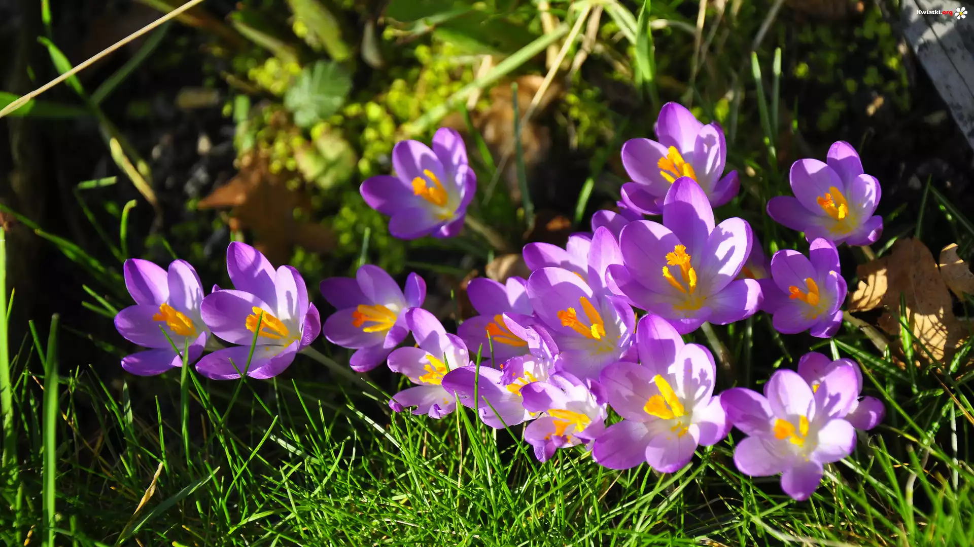 Fioletowe, Krokusy, Trawa - Zdjęcia