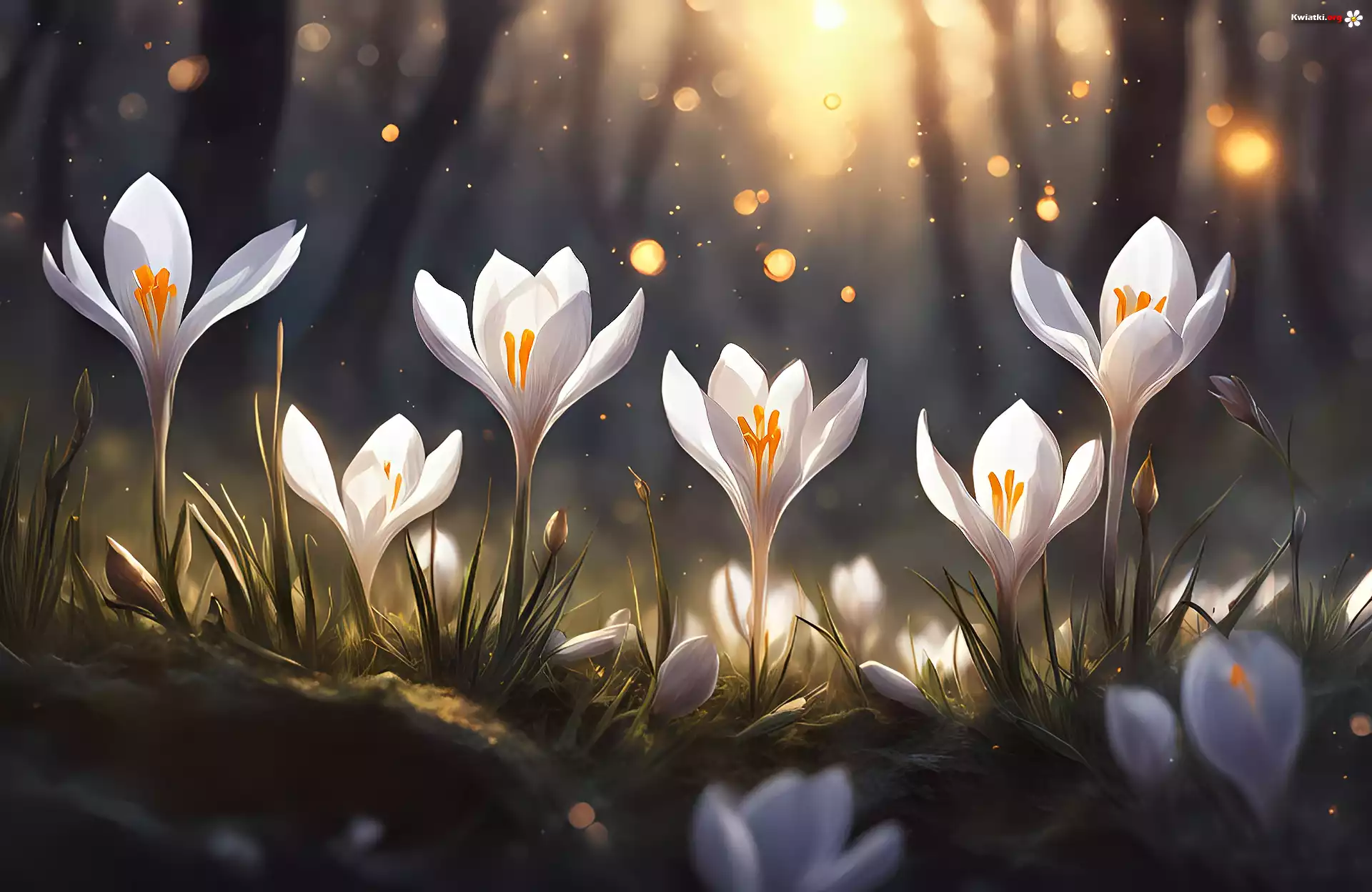 Białe, Krokusy, Kwiaty, Grafika 2D - Zdjęcia