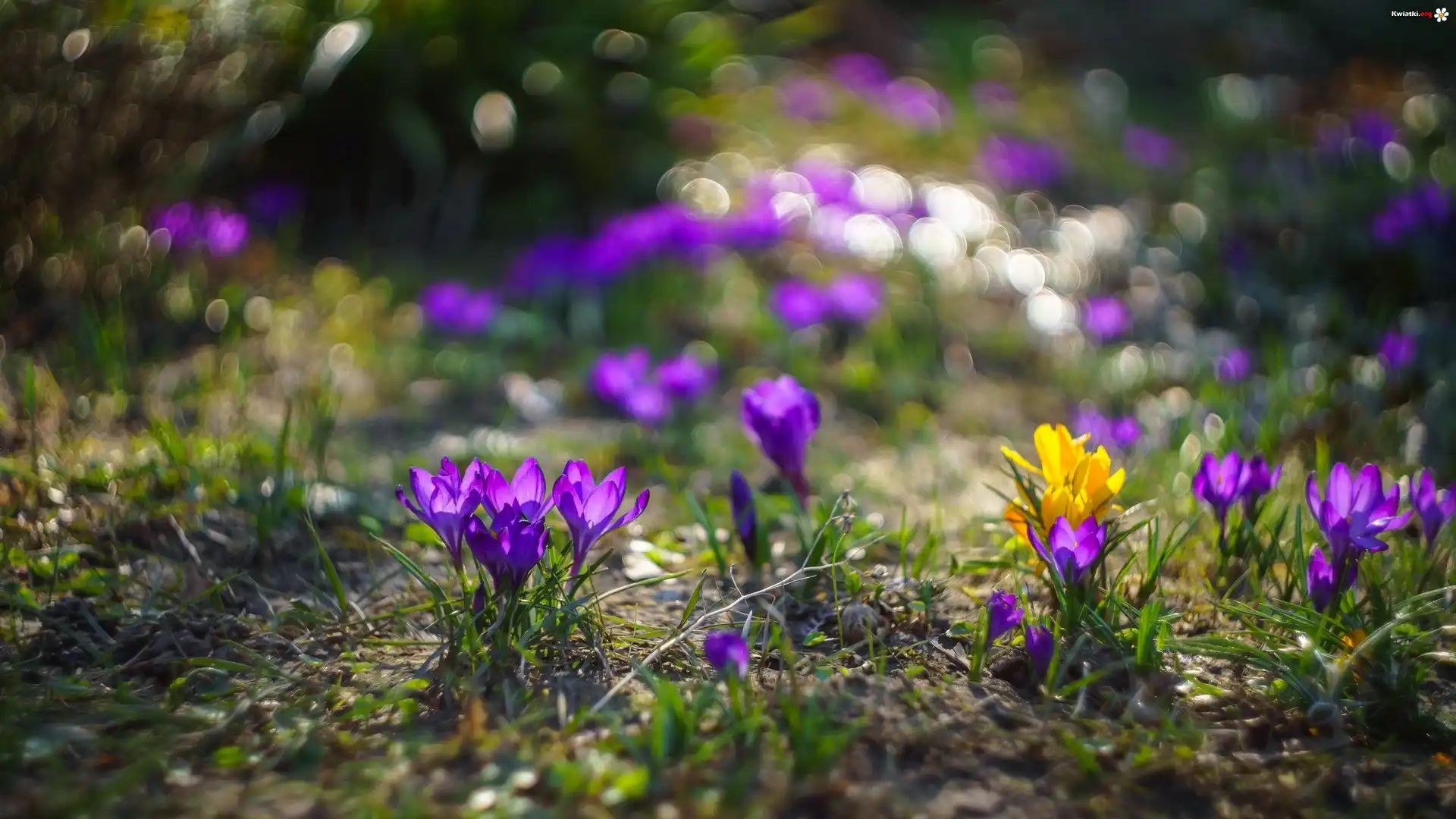 Kwiaty, Krokusy, Bokeh - Zdjęcia
