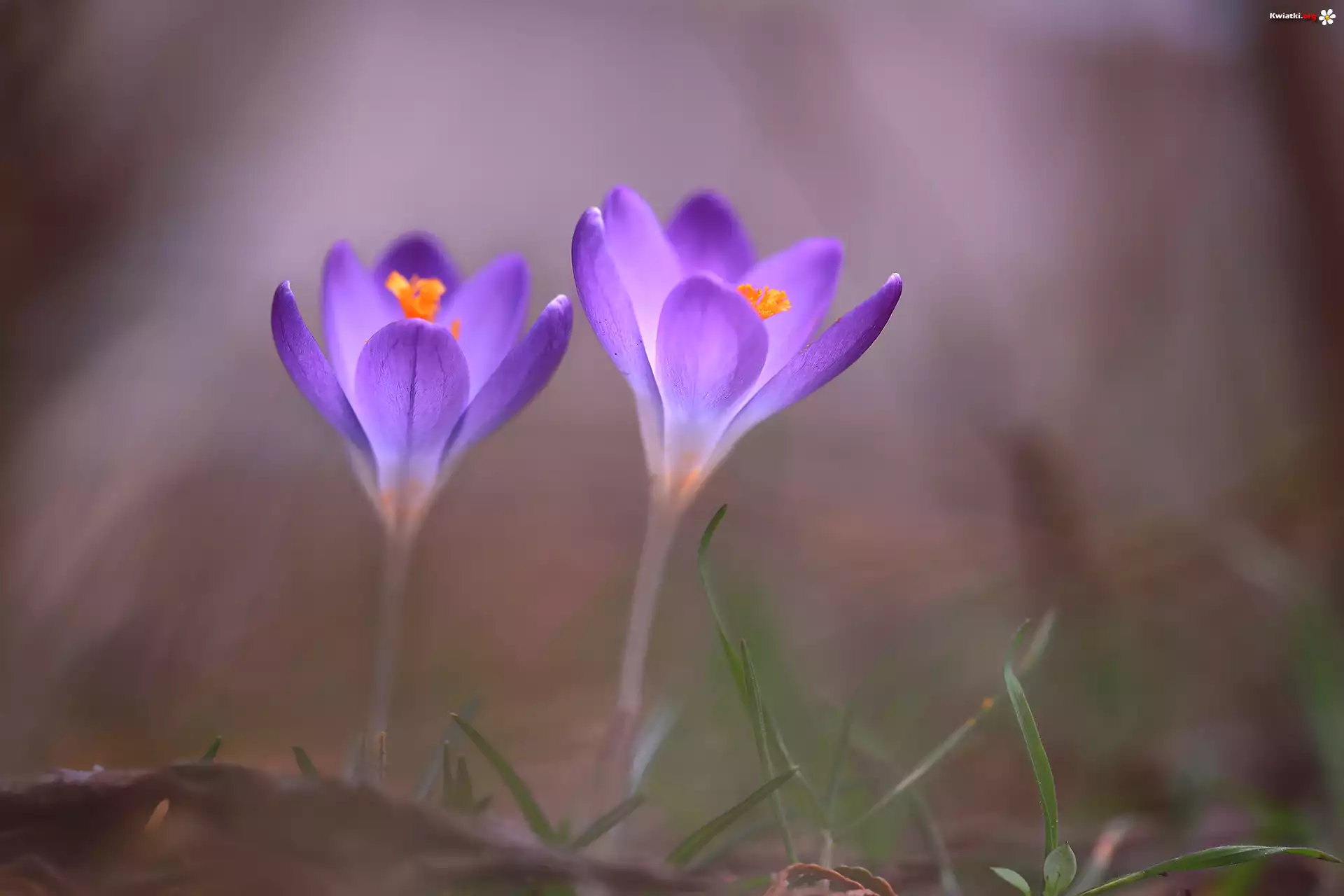 Kwiaty, Dwa, Fioletowe, Krokusy - Zdjęcia