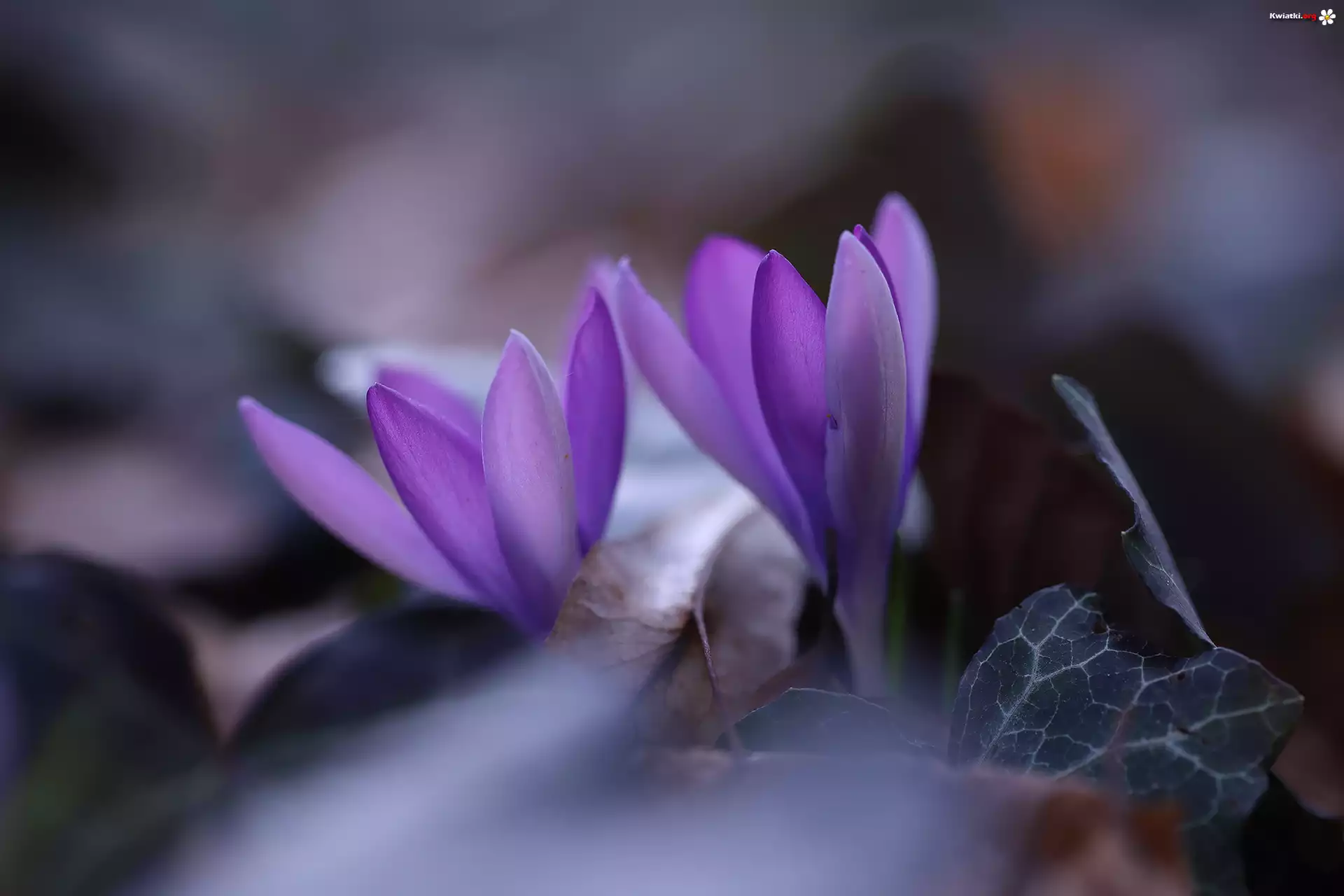 Kwiat Krokusy, Fioletowe, Kwiaty, Dwa