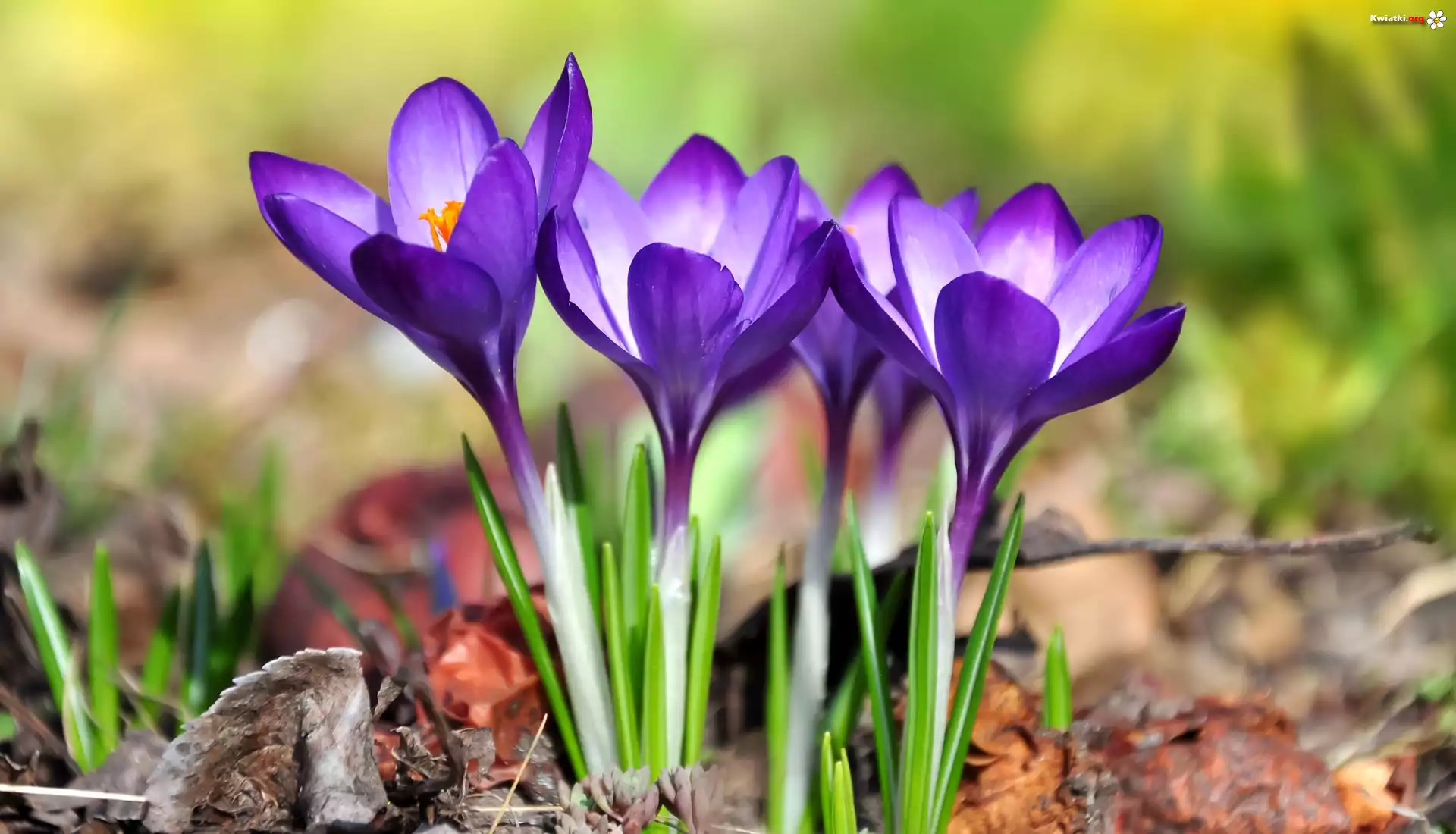 Kwiat Krokusy, Fioletowe, Kwiaty, Kępka
