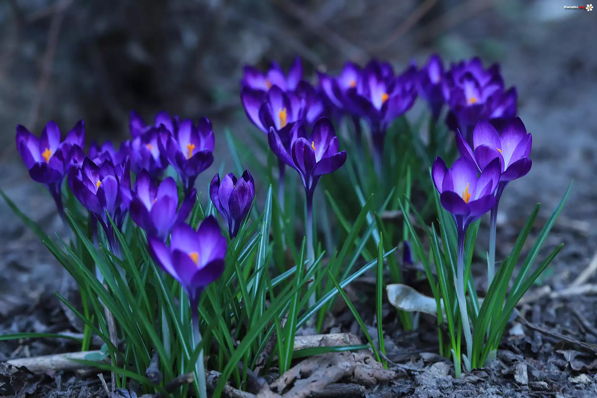 Krokusy, Fioletowe, Kwiaty, Kępki - Zdjęcia