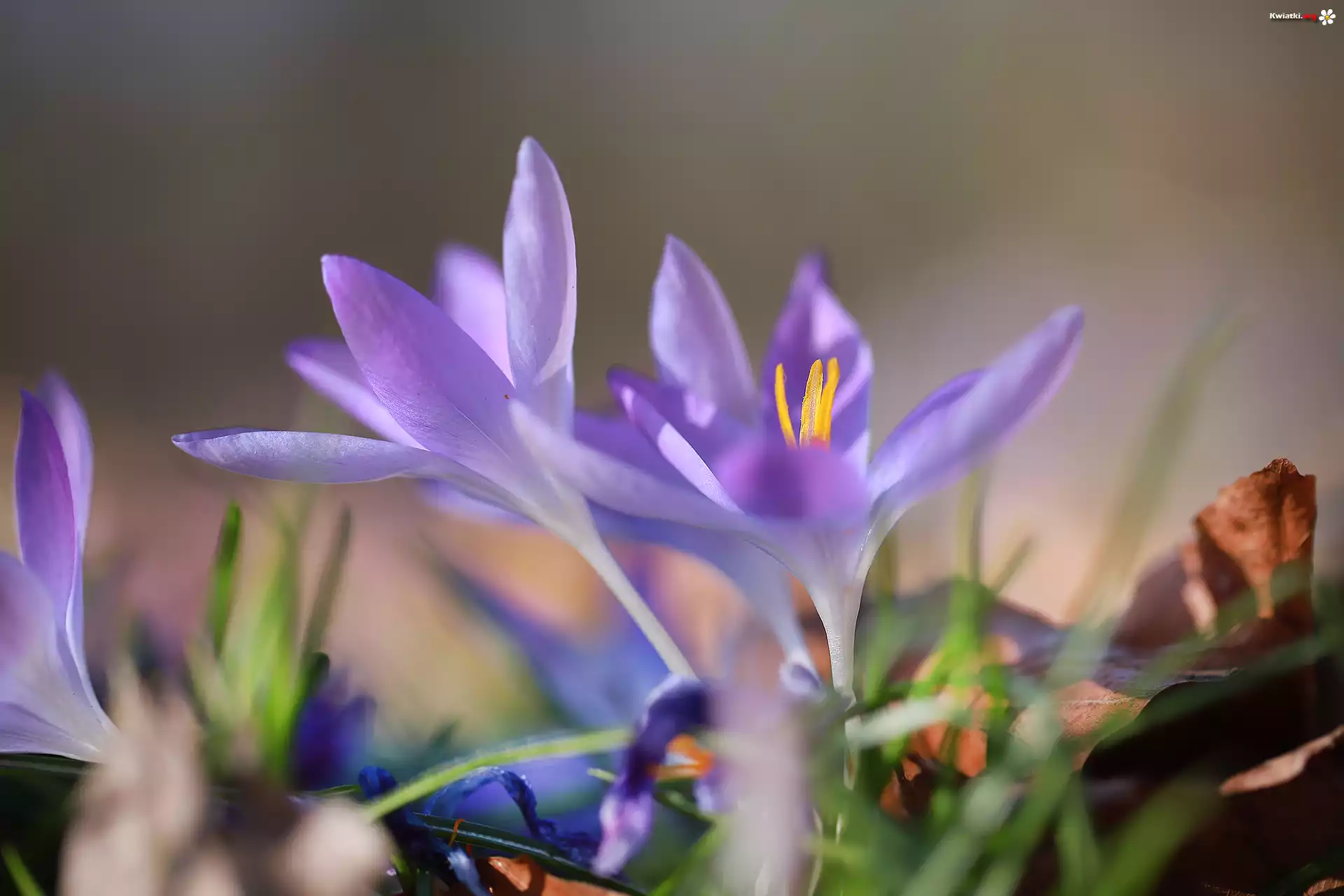 Fioletowe, Krokusy, Kwiaty, Żółte, Pręciki - Zdjęcia