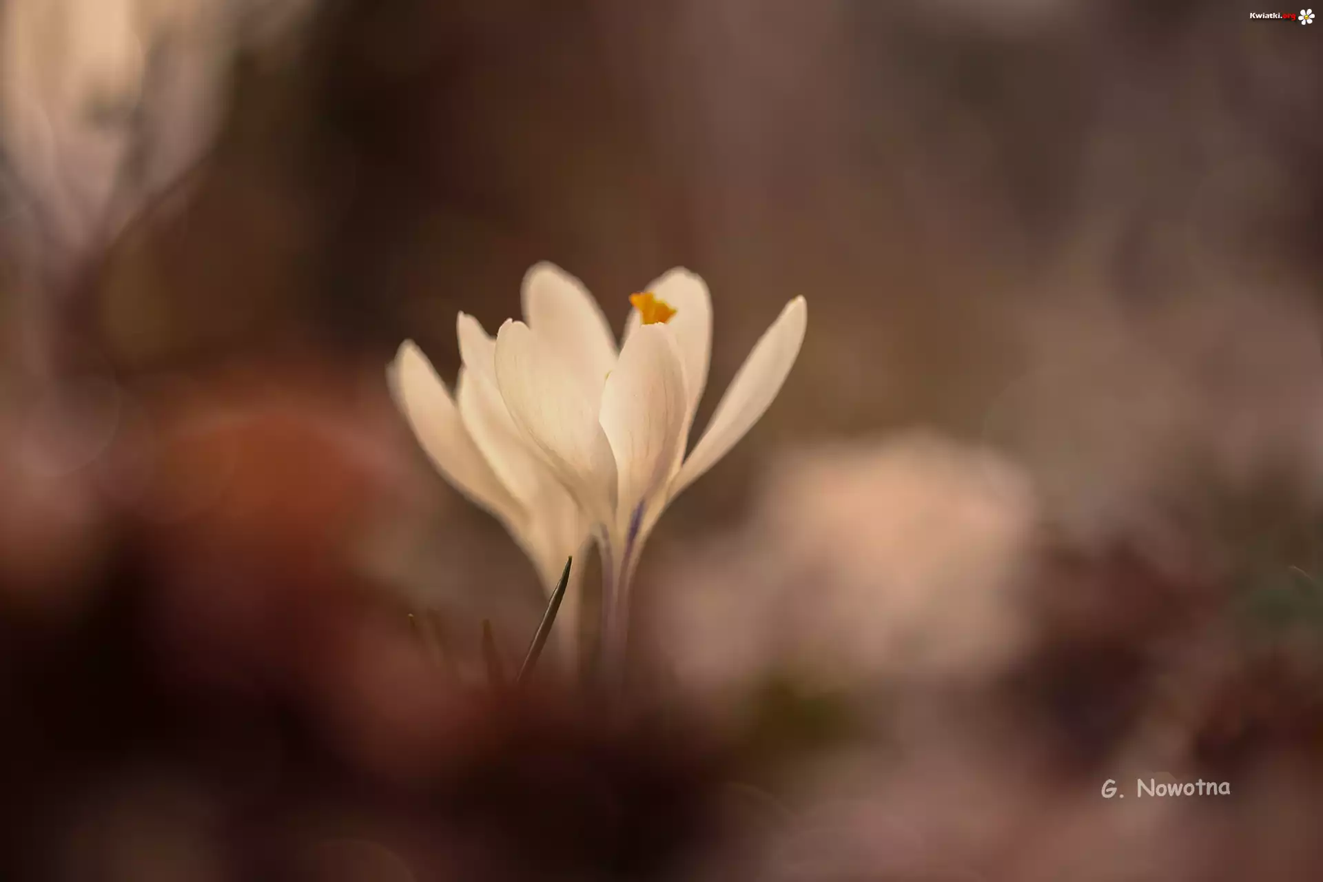 Białe, Krokusy, Kwiaty, Rozmyte tło - Zdjęcia