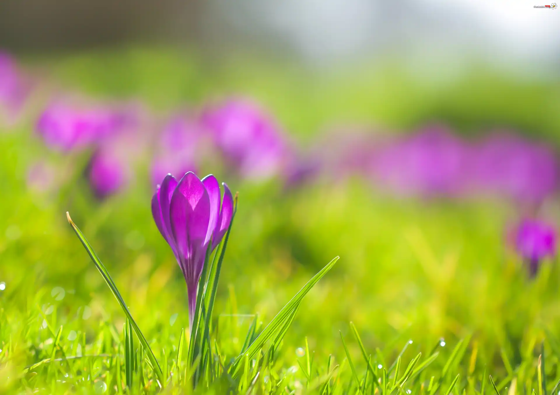Kwiaty, Krokusy, Trawa - Zdjęcia