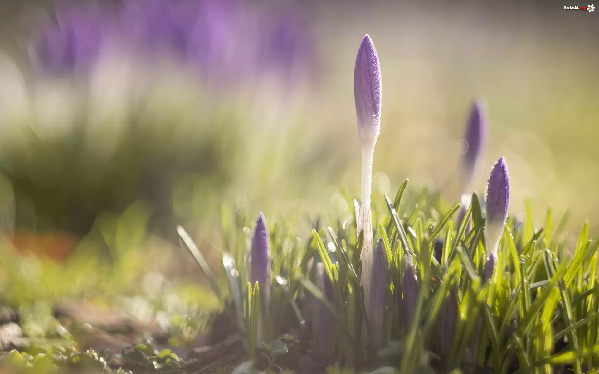 Kwiat Krokusy, Trawa, Rozmyte tło