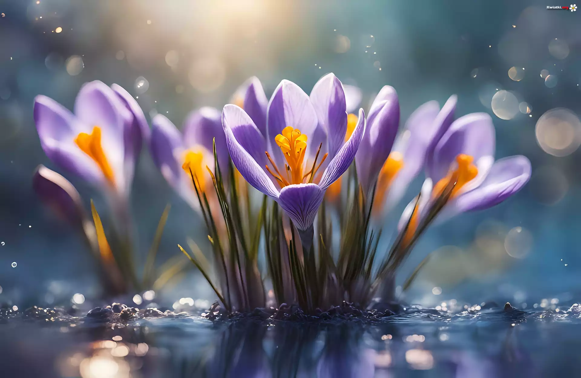 Fioletowe, Krokusy, Rozświetlone, Kwiaty, 2D - Zdjęcia