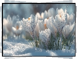 Białe, Krokusy, Śnieg, Grafika AI - Zdjęcia