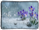 Fioletowe, Krokusy, Śnieg, Grafika AI - Zdjęcia