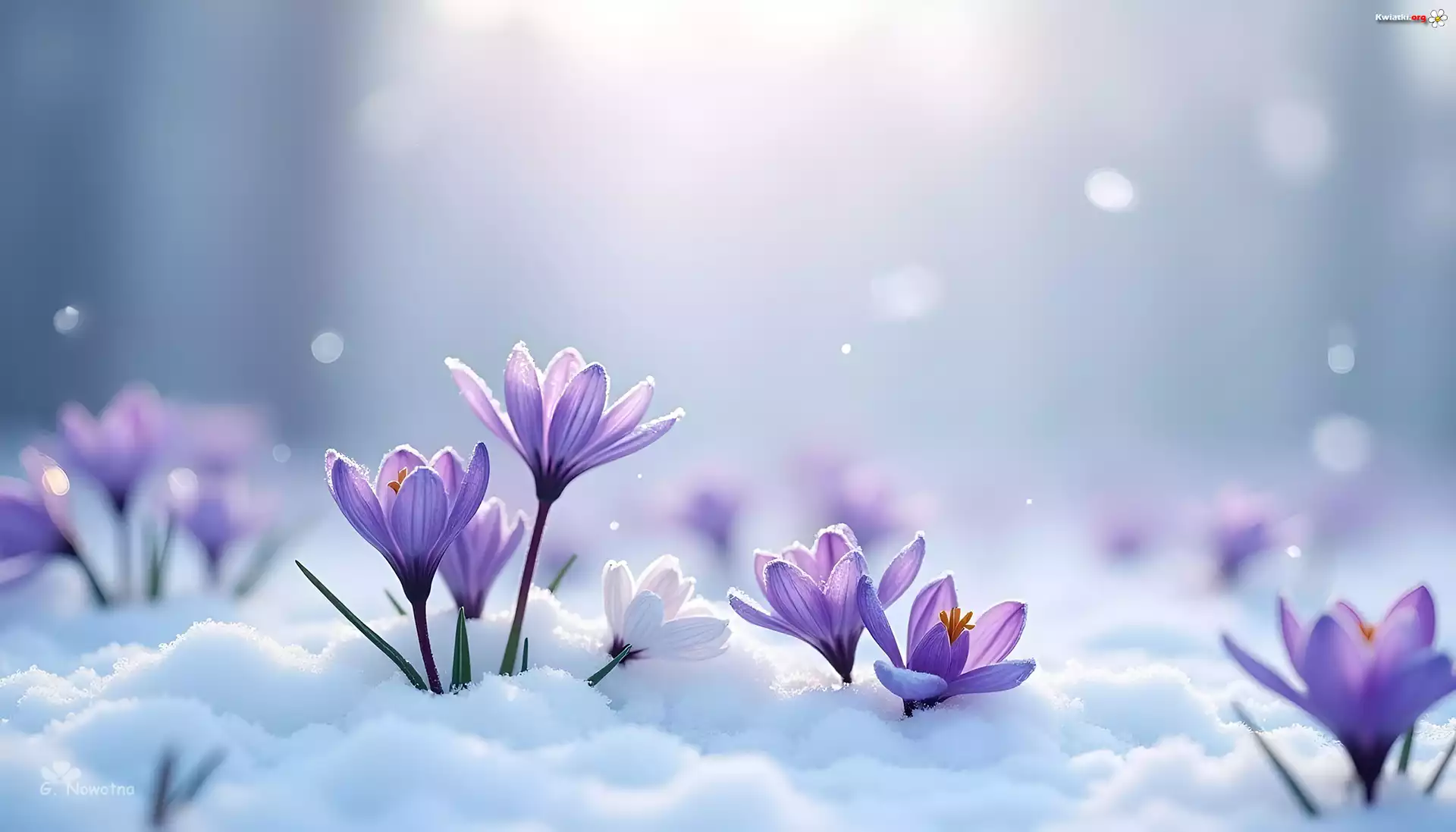 Fioletowe, Krokusy, Śnieg, Zima, Grafika - Zdjęcia
