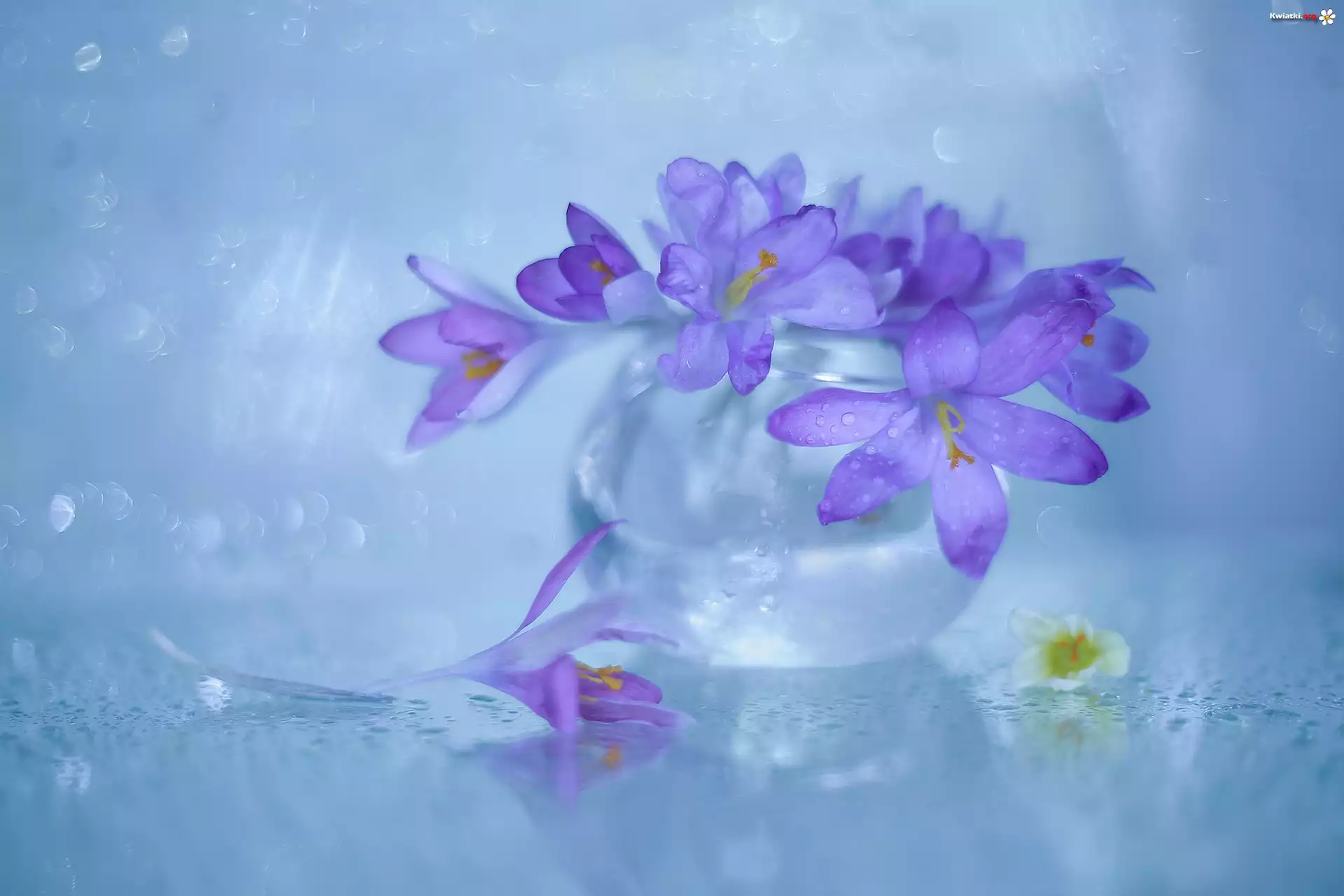 Kwiat Krokusy, Fioletowe, Kwiaty, Szklany, Wazonik