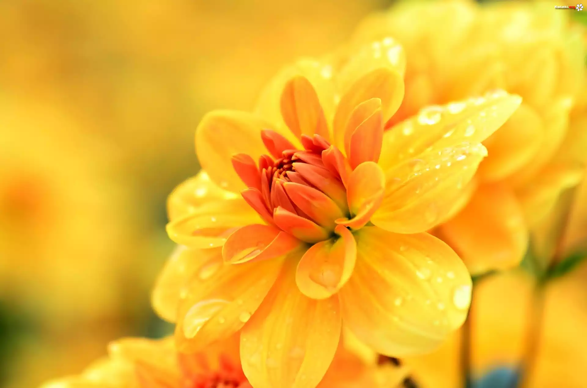 Żółty, Kwiat, Kropelki, Wody - Zdjęcia