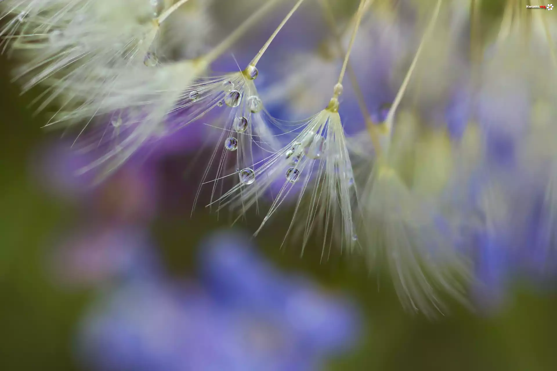 Dmuchawiec, Krople, Makro - Zdjęcia
