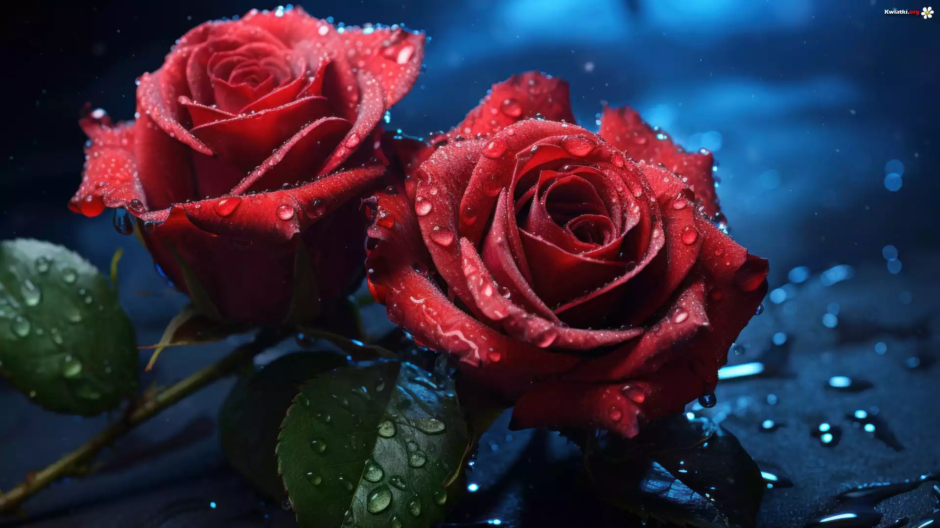 Kwiat Dwie, Czerwone, Róże, Krople