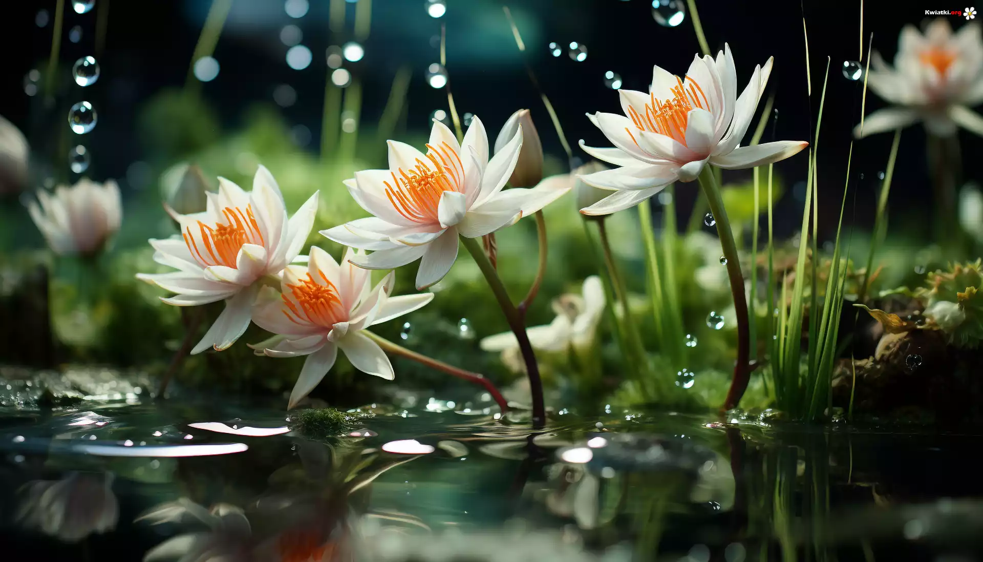 Kwiat Kwiaty, Lilie wodne, Krople, Wody, Grafika