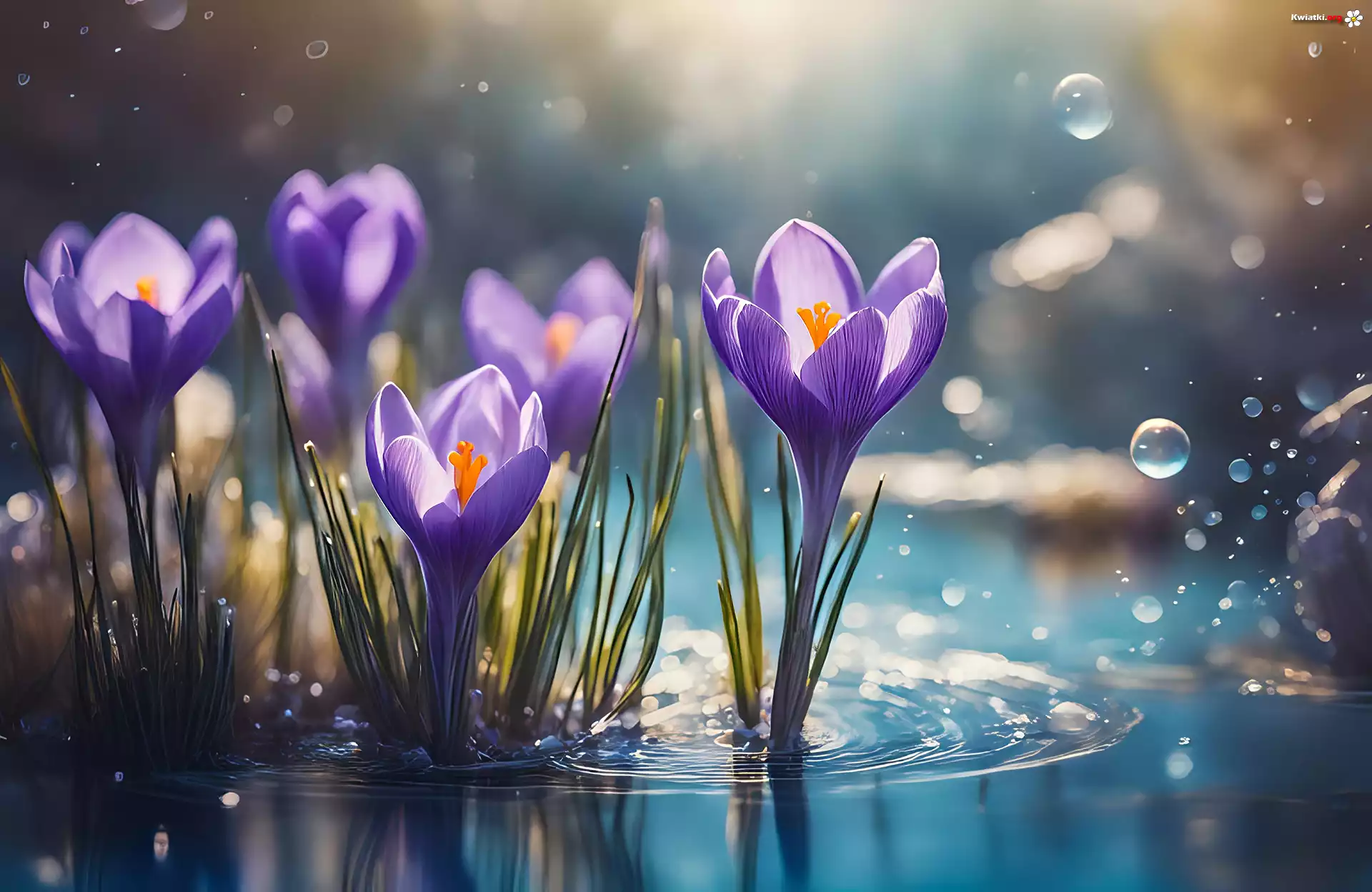 Kwiat Jasnofioletowe, Krokusy, Kwiaty, Krople