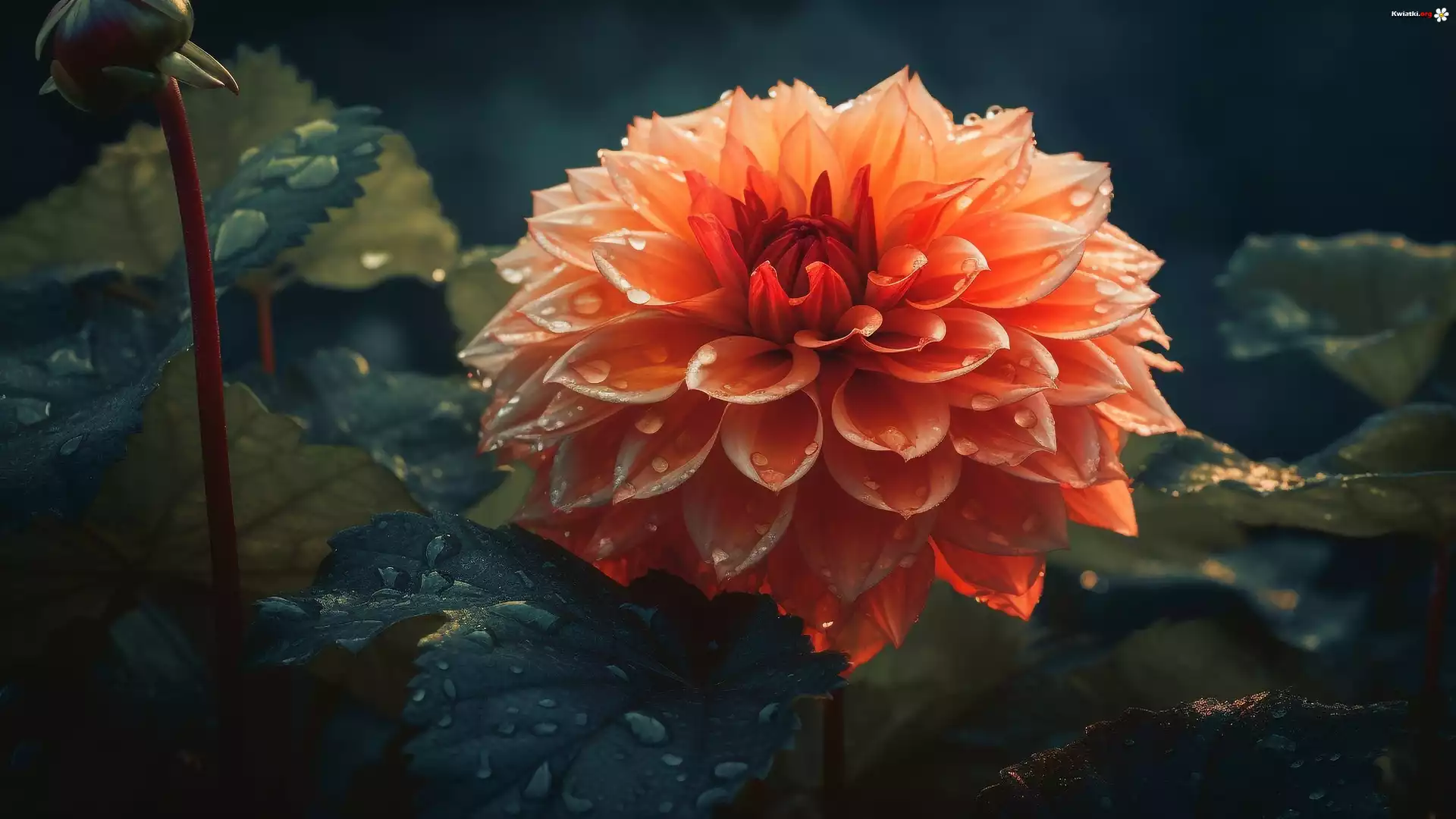 Kwiat, Dalia, Liście, Krople - Zdjęcia