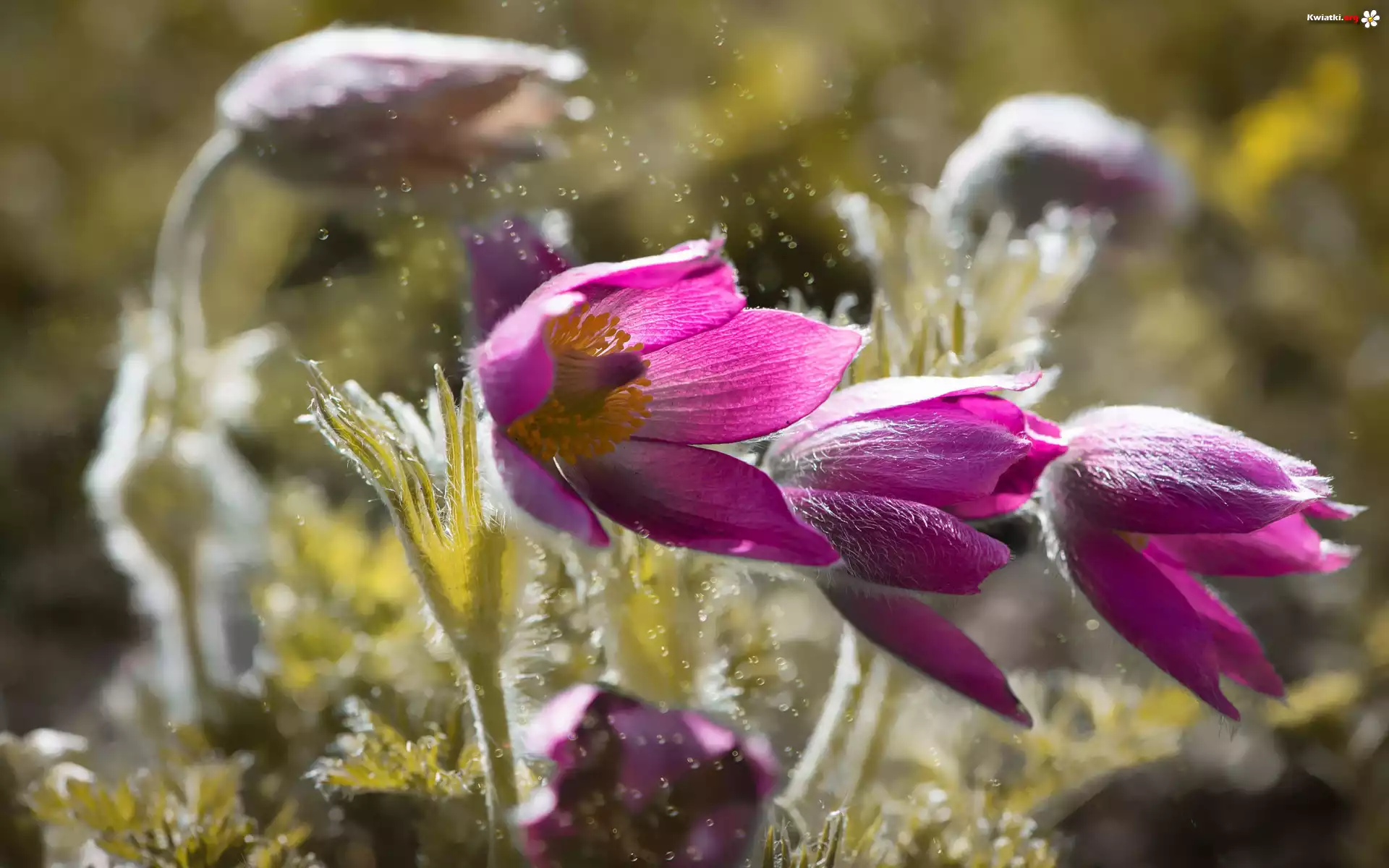 Kwiaty, Fioletowe, Sasanki, Krople - Zdjęcia