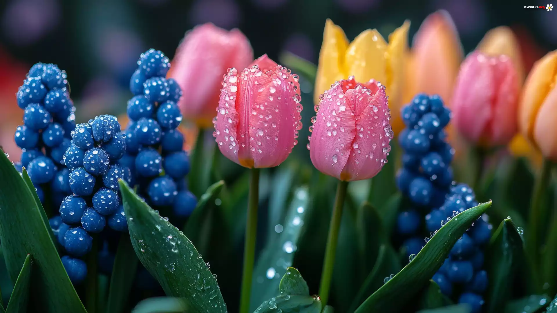 Mokre, Kwiaty, Tulipany, Krople - Zdjęcia
