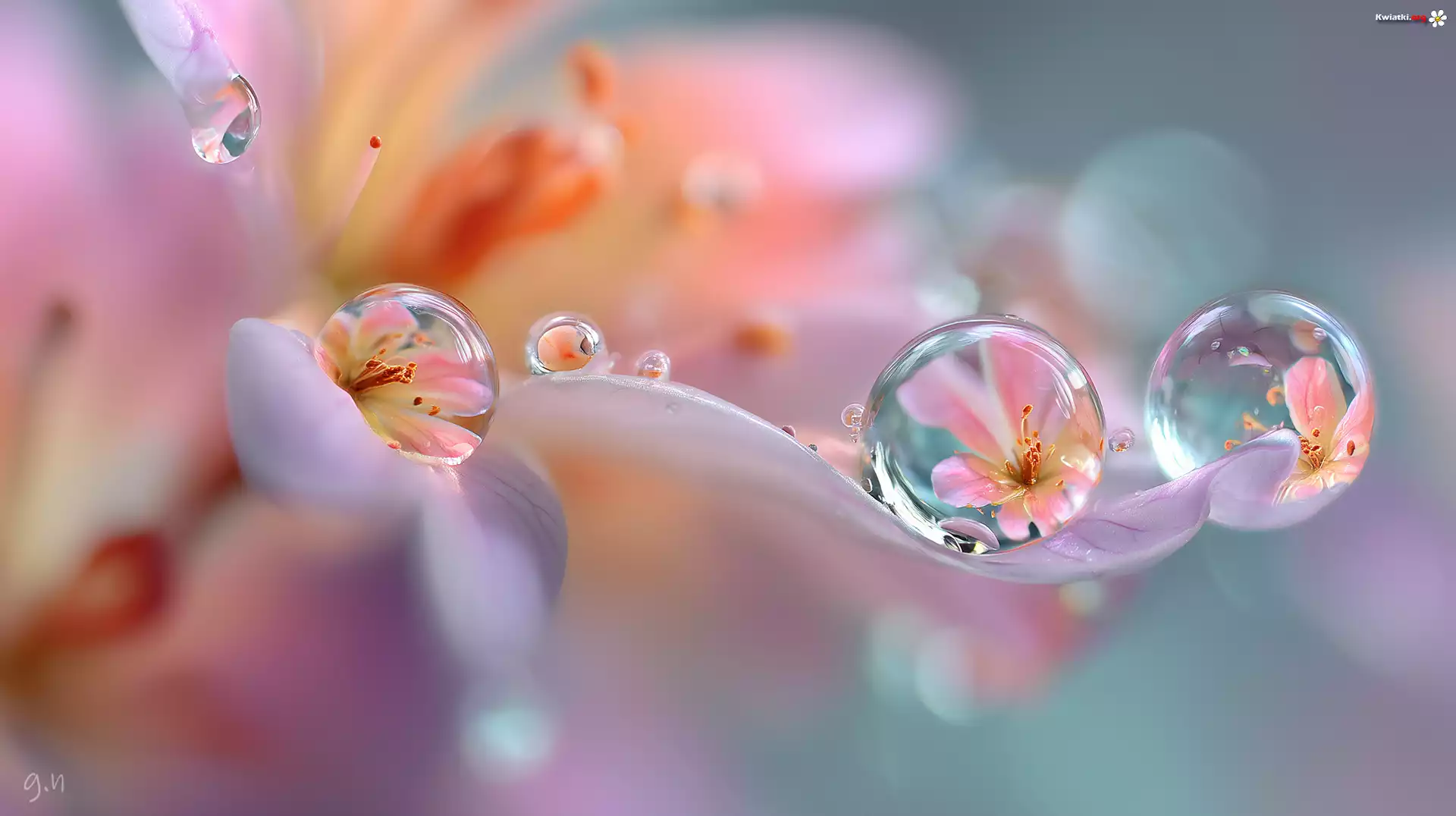Kwiat, Krople, Odbicia, Grafika AI - Zdjęcia