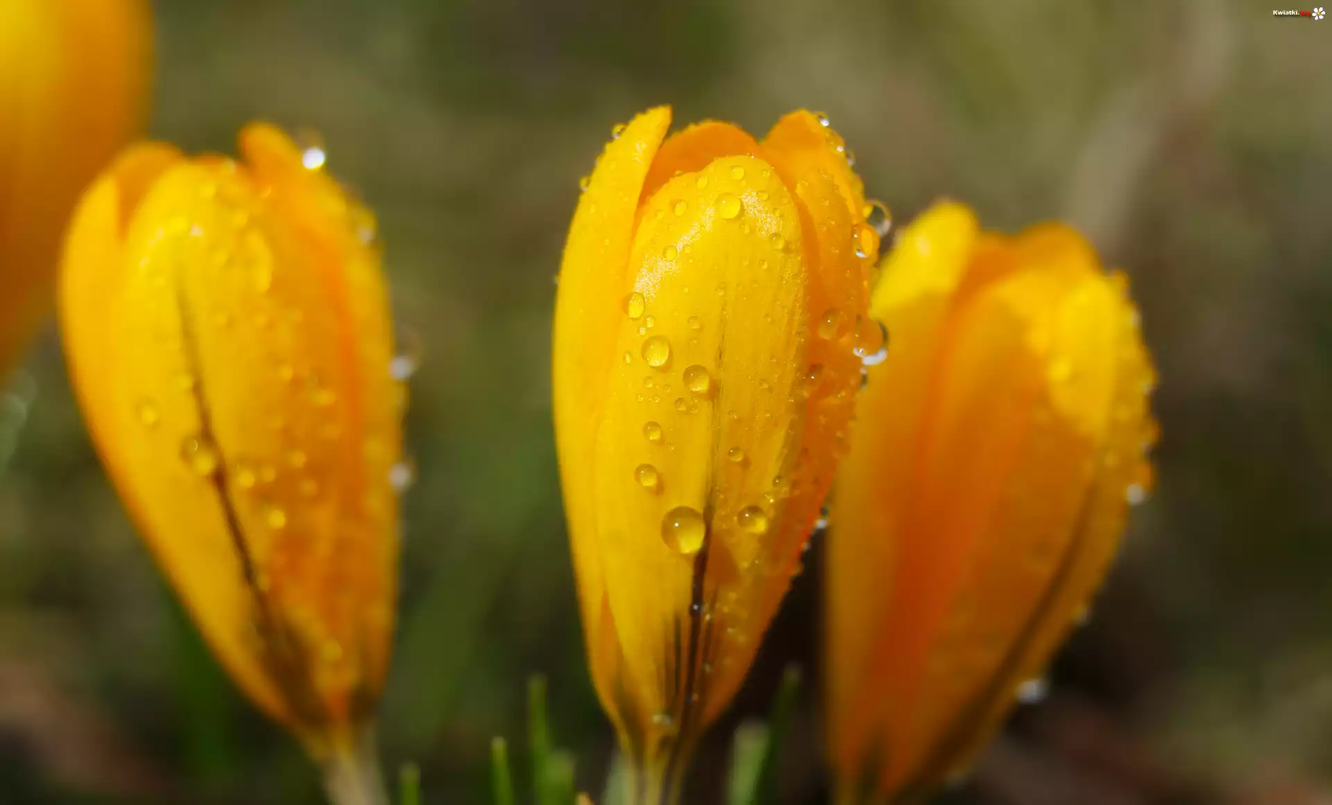 Kwiat Żółte, Krokusy, Pąki, Krople