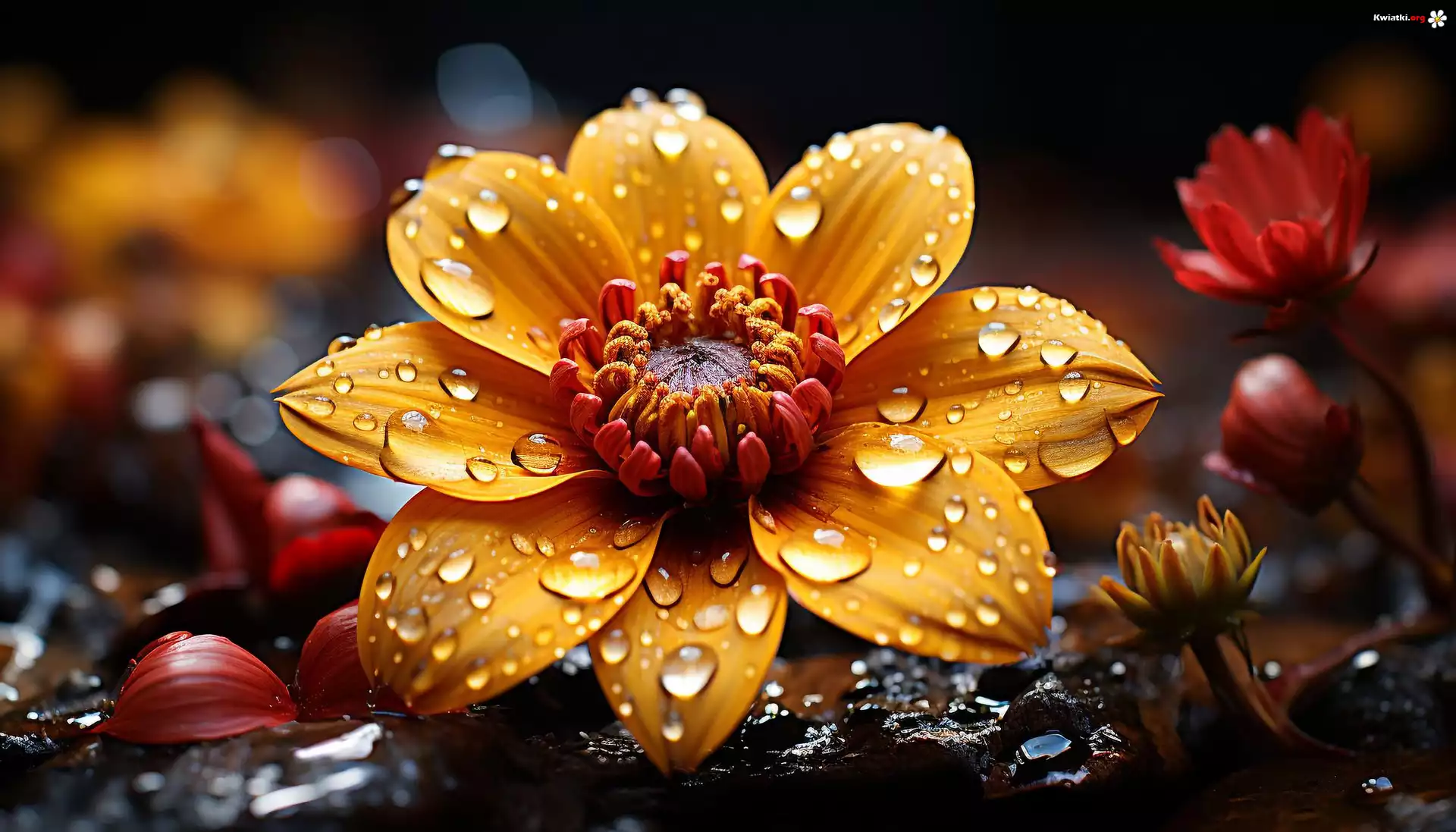 Kwiat Żółty, Kwiat, Płatki, Krople