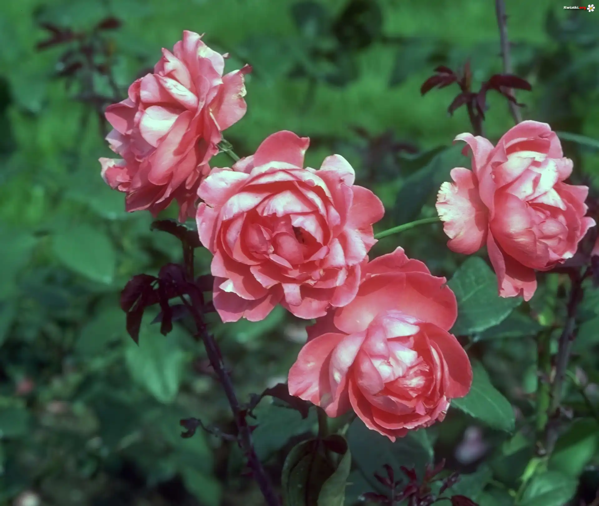 Kwiat Krzak, Biało, Czerwonych, Róż