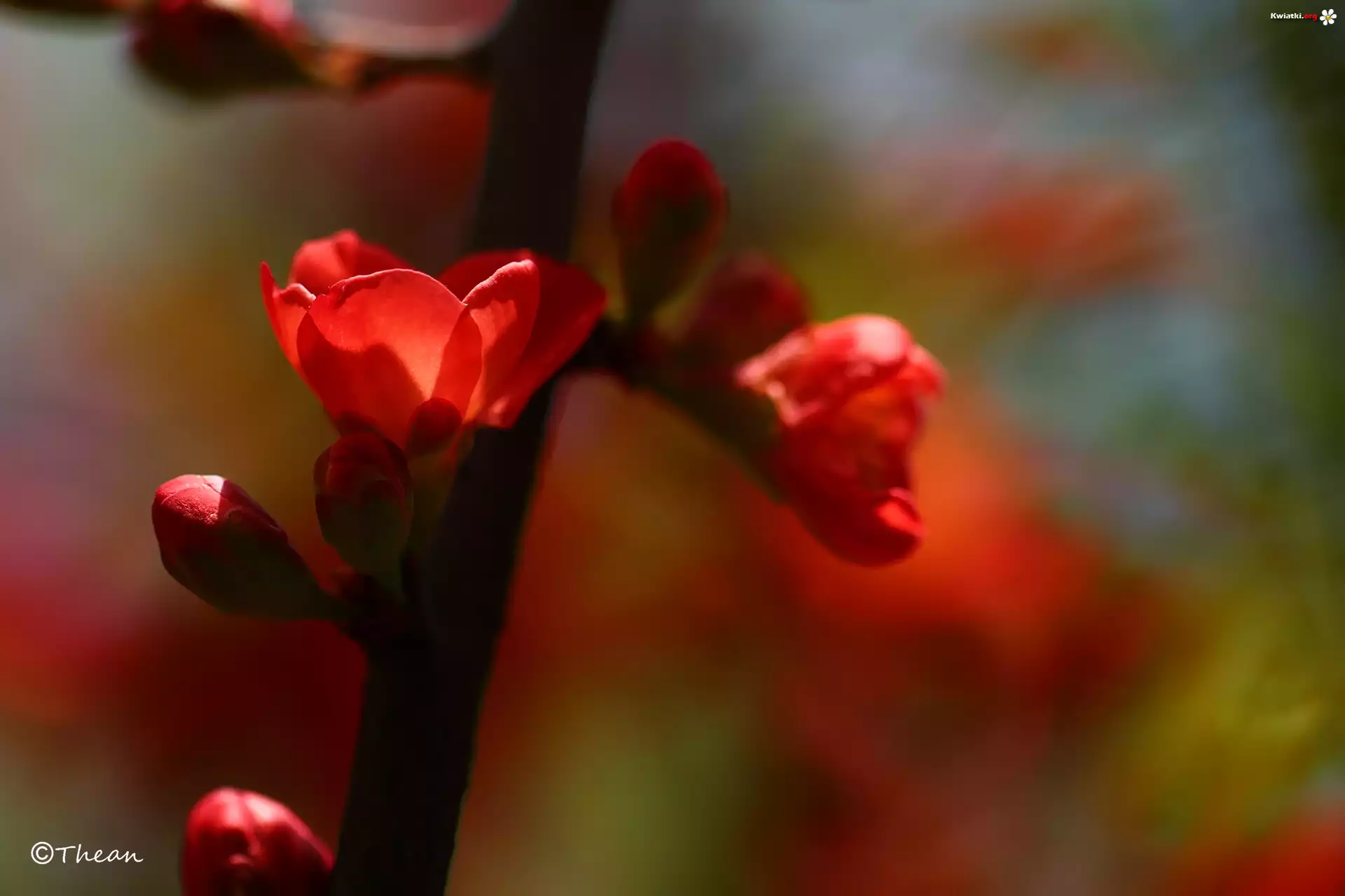 Krzew, Pigwowiec Japoński, Czerwone, Kwiaty - Zdjęcia