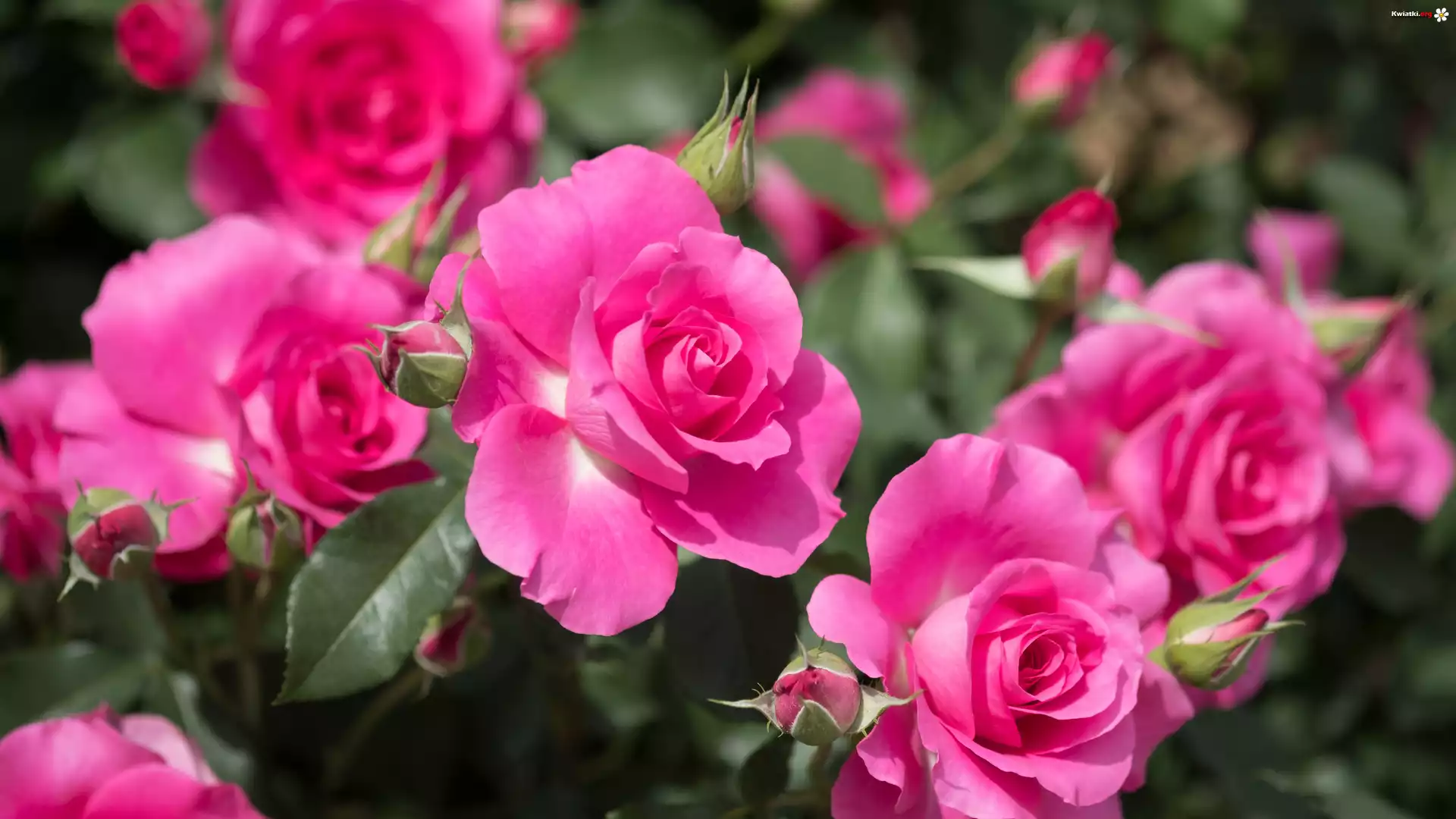 Krzew, Różowe, Róże, Liście - Zdjęcia
