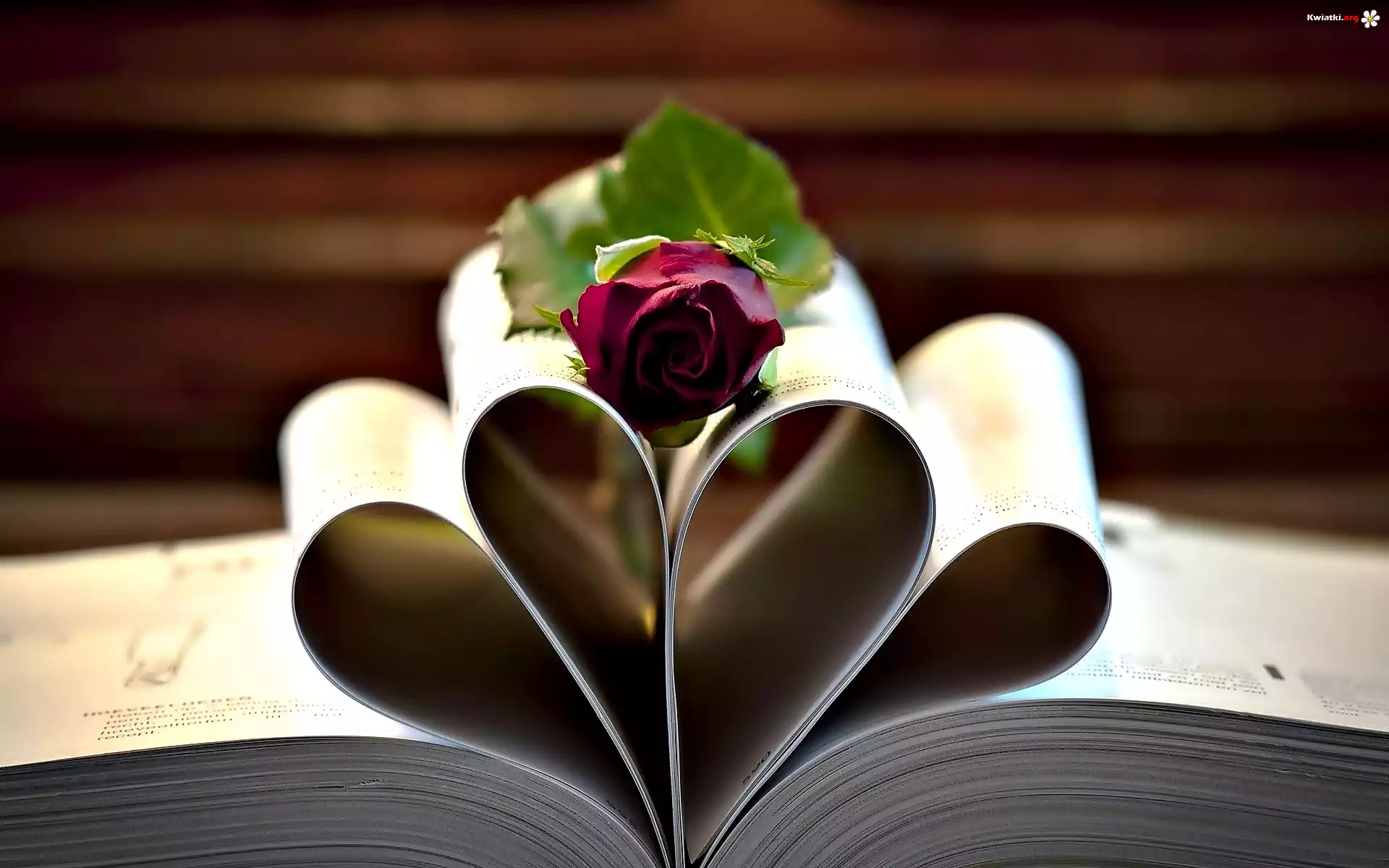 Kwiat Książka, Kartki, Róża, Walentynki, Miłosne