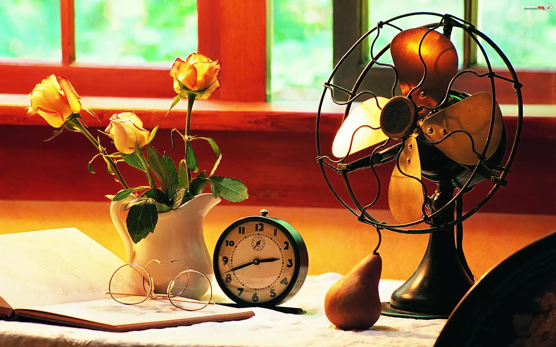 Książka, Okulary, Zegarek, Kwiaty, Wazon, Wentylator - Zdjęcia