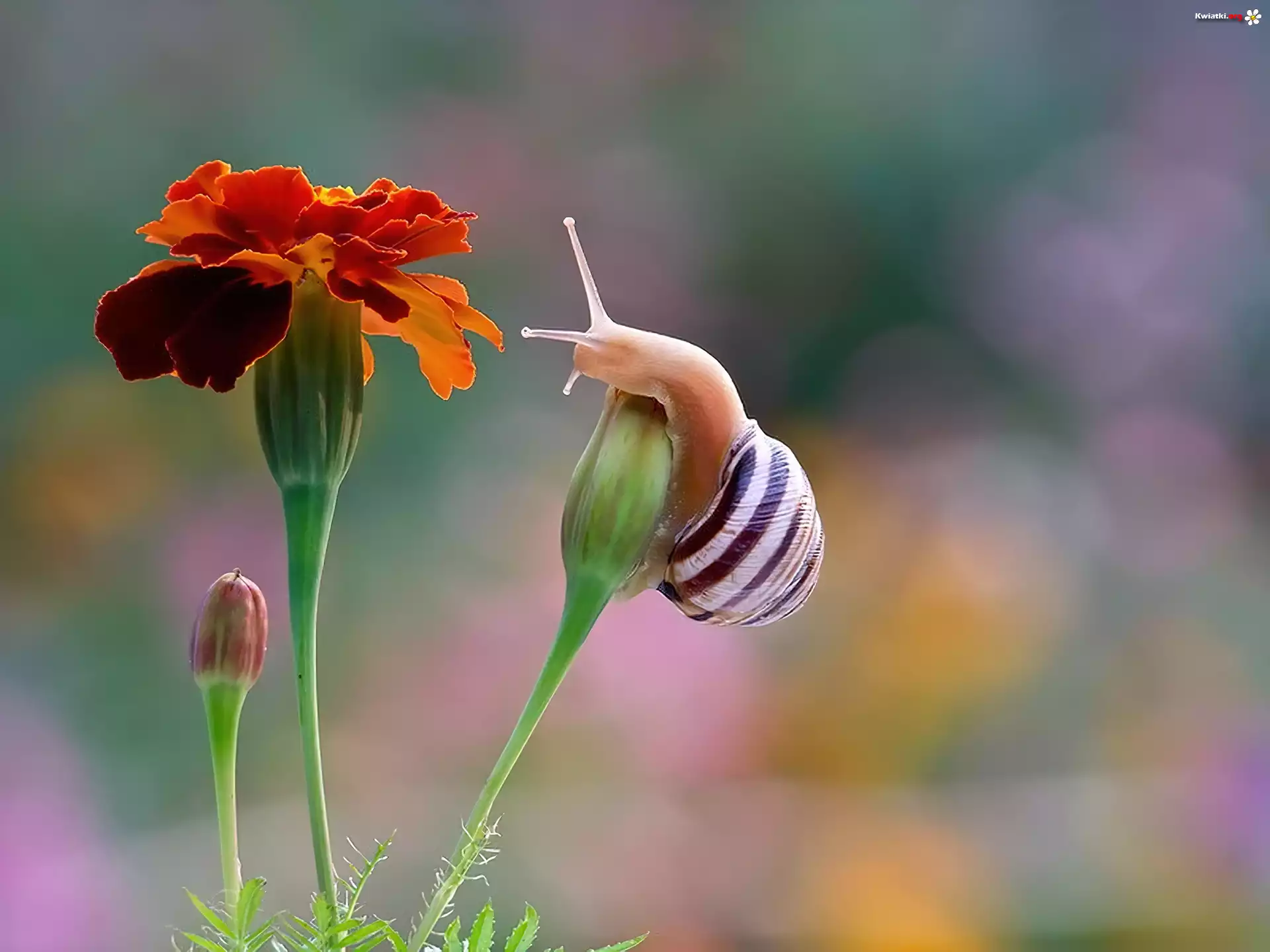 Kwiat, Pąki, Aksamitka, Ślimak - Zdjęcia