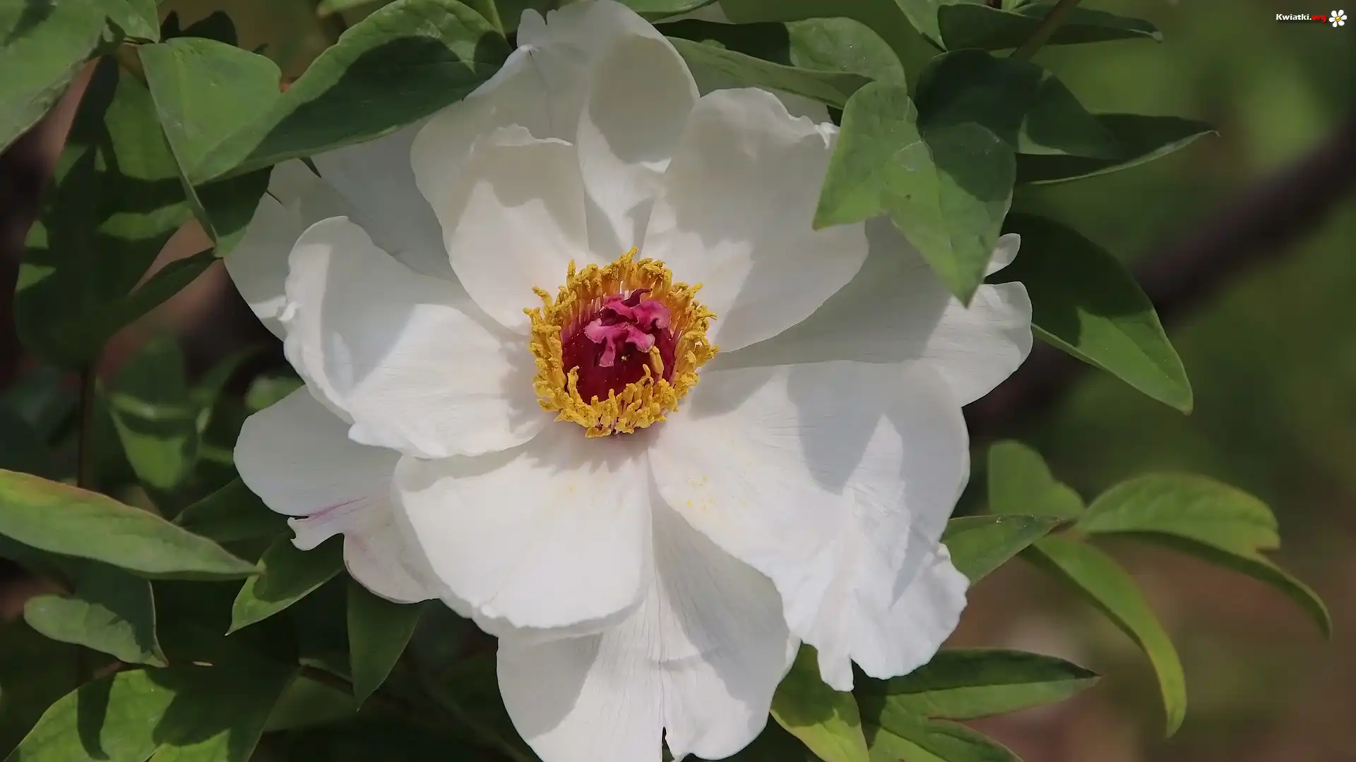 Kwiat, Piwonia, Biała, Listki - Zdjęcia