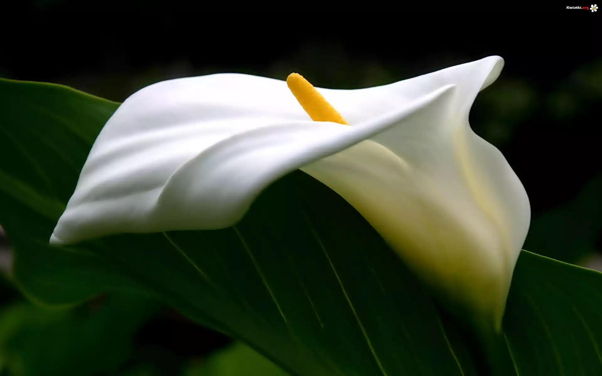 Kwiat, Kalia, Biały, Liście - Zdjęcia