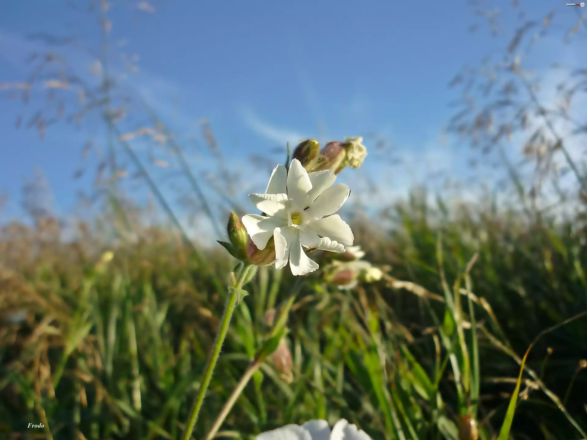 Kwiat Kwiat, Biały, Trawa, Niebo, Chmury, Lato