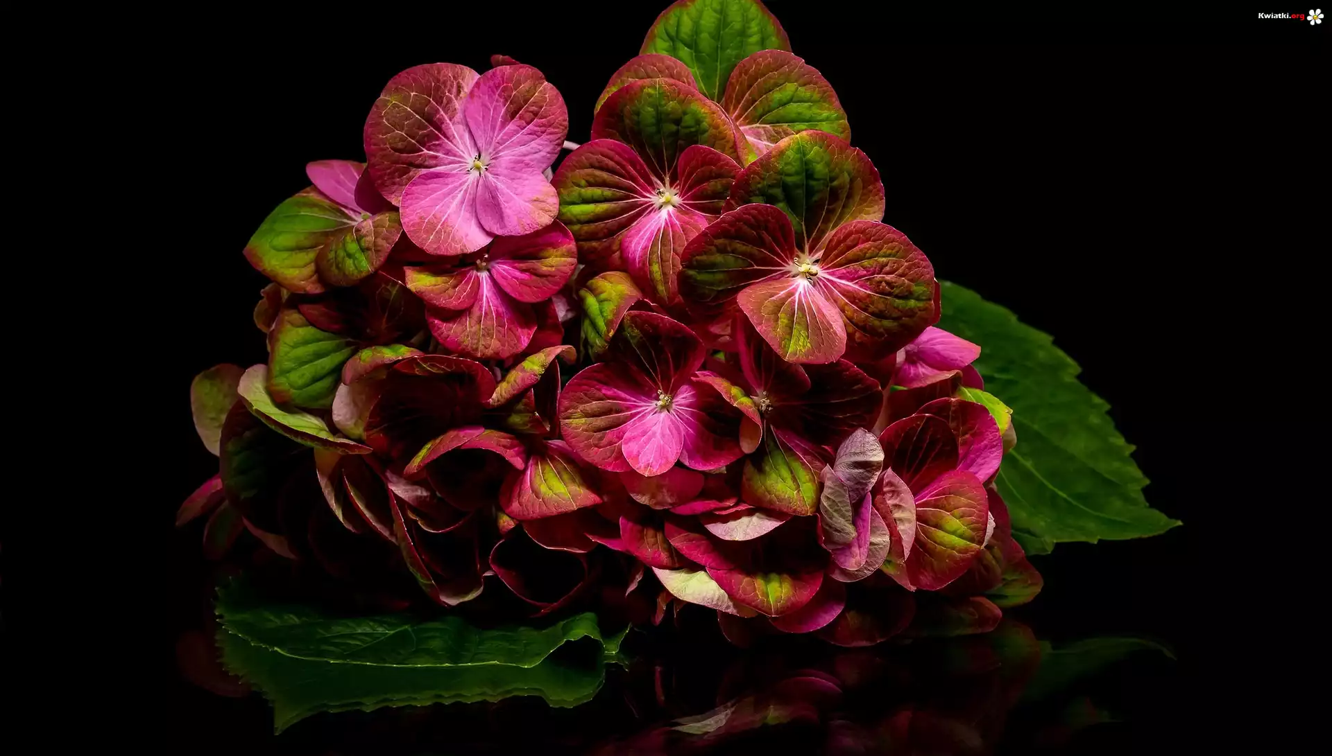 Kwiat Kwiat, Hortensja, Liście, Ciemne, Tło