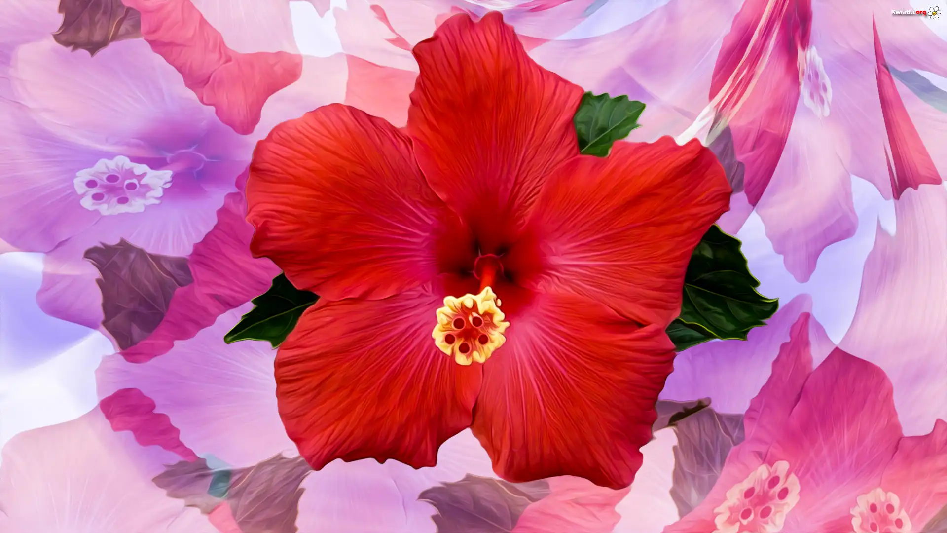 Kwiat, Hibiskus, Czerwony, Grafika - Zdjęcia