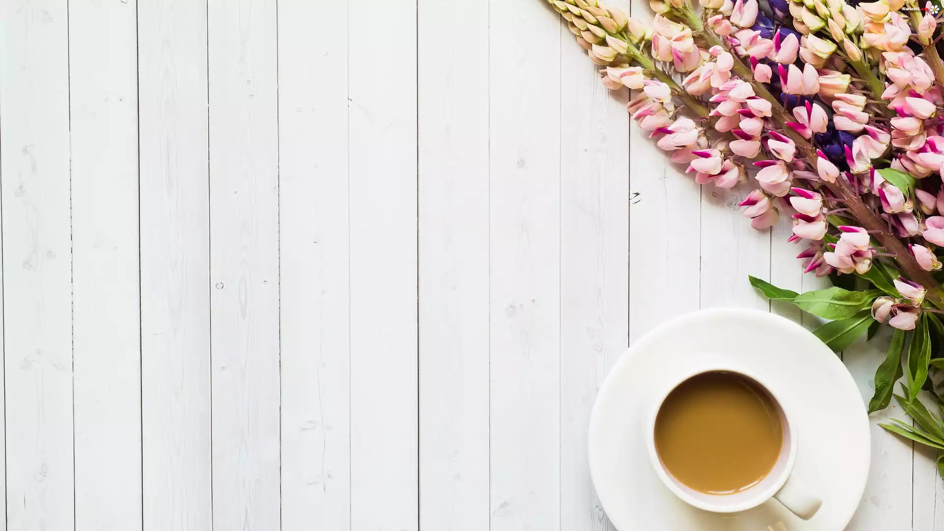 Kwiat, Łubin, Kawa, Filiżanka, Deski - Zdjęcia