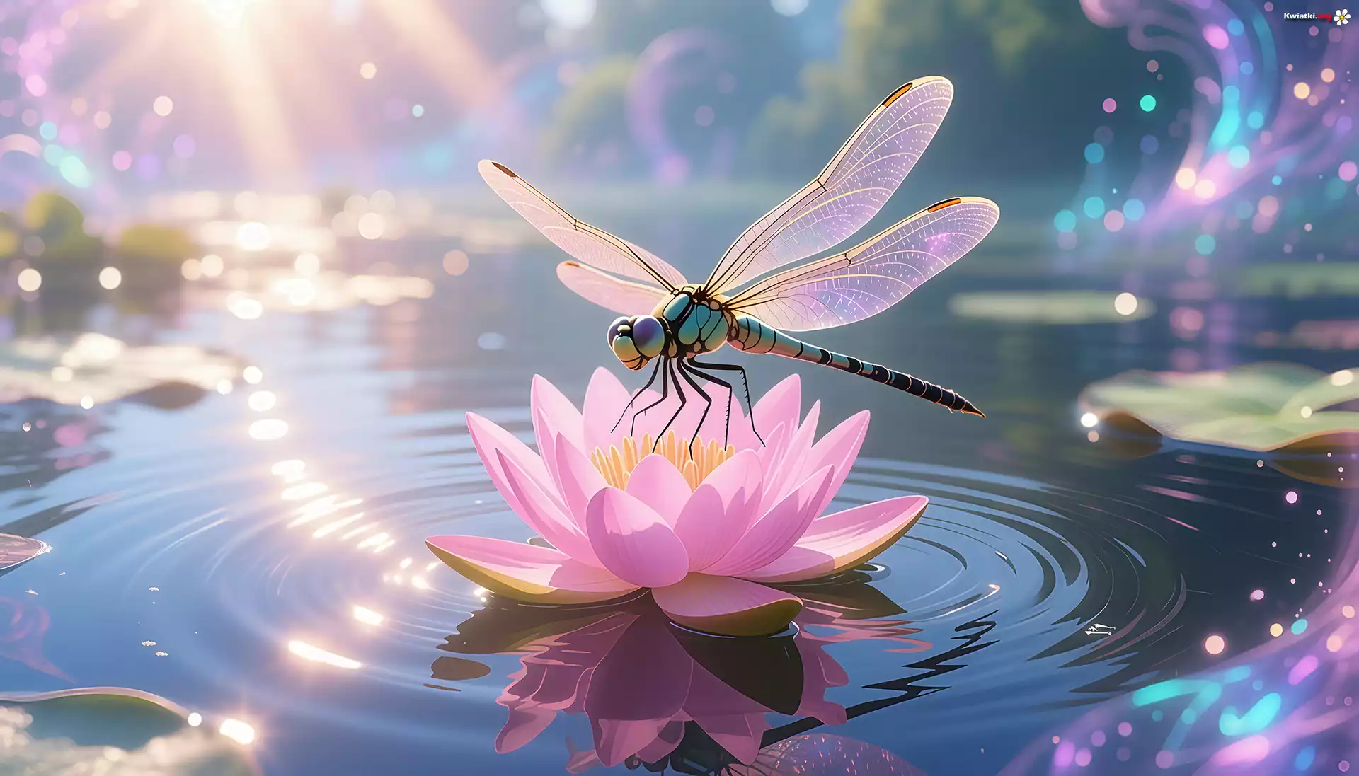 Ważka, Lilia wodna, Kwiat, Owad, Grafika - Zdjęcia