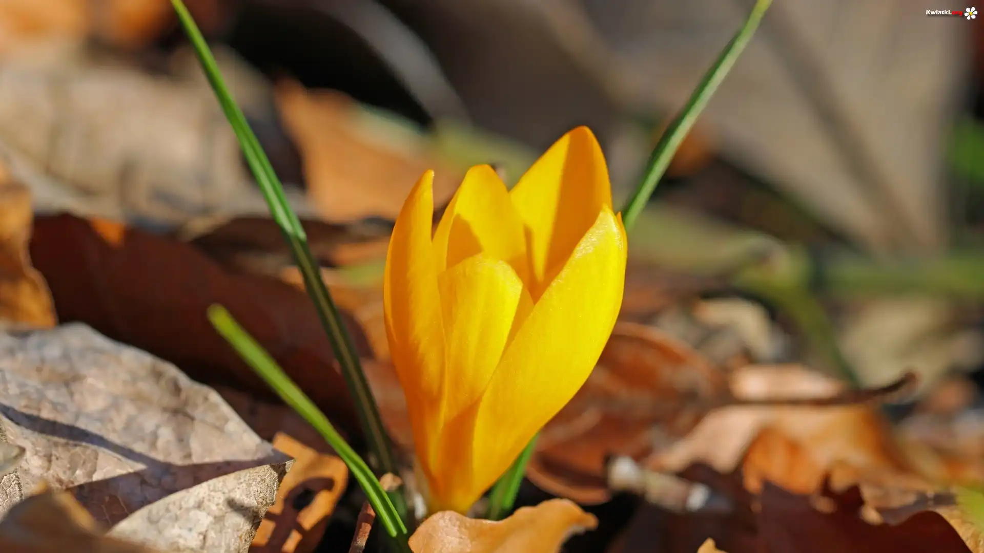 Kwiat Kwiat, Żółty, Krokus, Liście