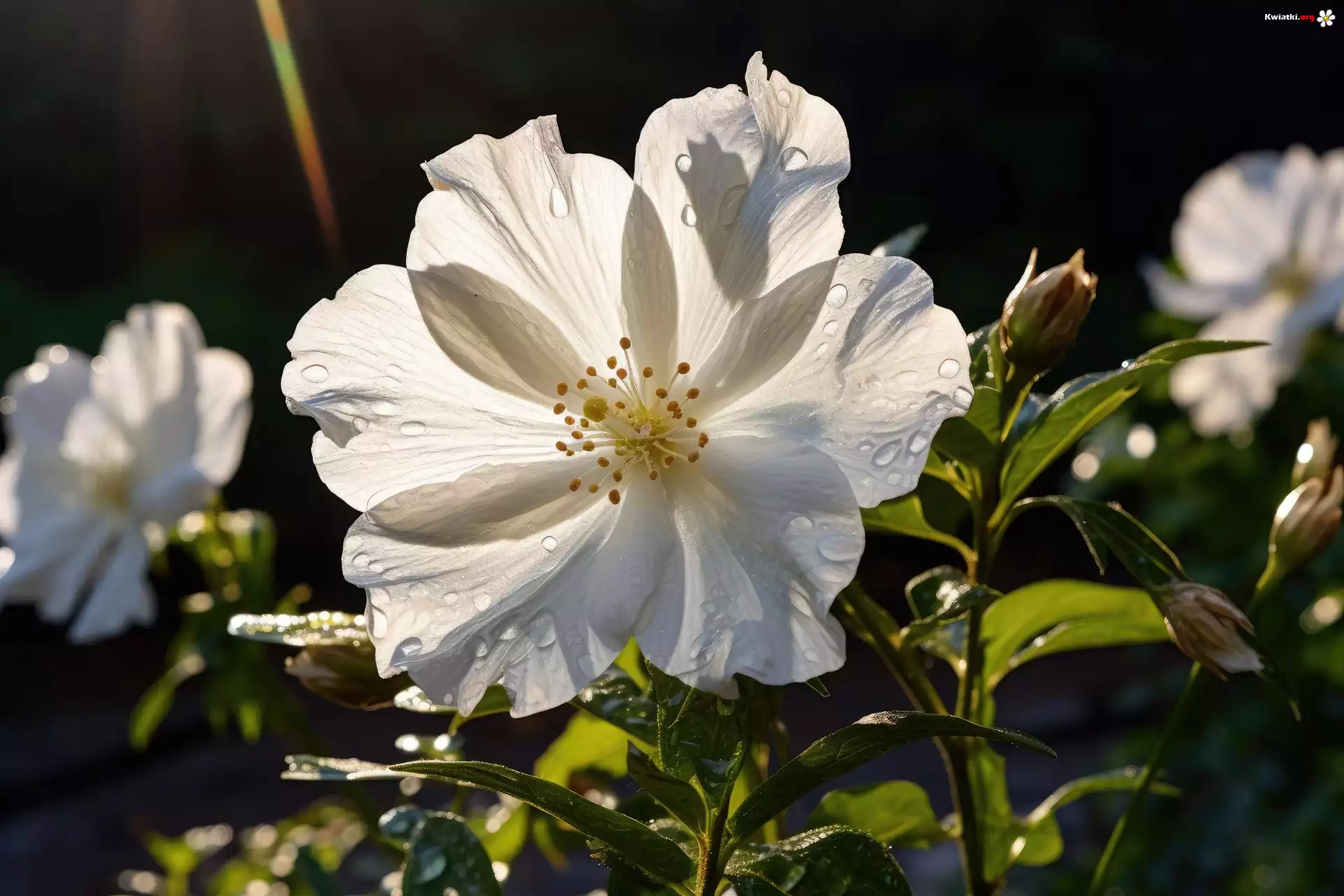 Kwiat Biały, Kwiat, Krople, Światło, Grafika