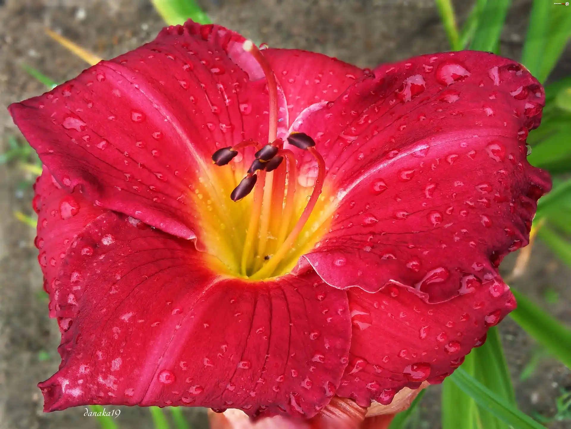 Kwiat Kwiat, Czerwony, Liliowiec, Krople