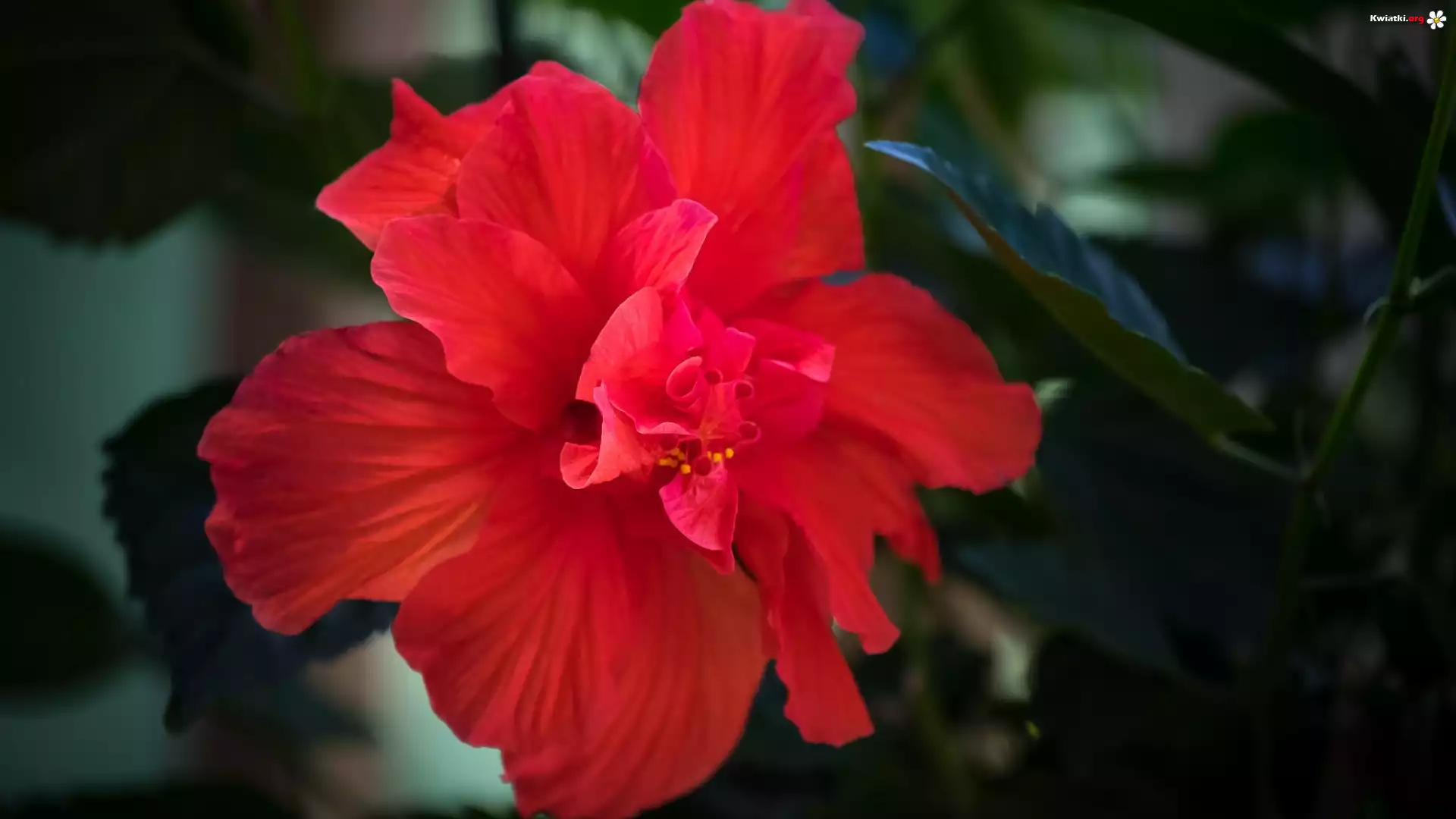 Kwiat, Hibiskus, Czerwony, Liście, Rozmycie - Zdjęcia