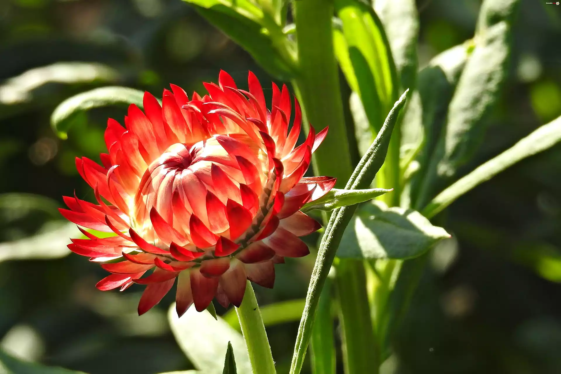 Kwiat, Czerwony, Liście, Światło - Zdjęcia