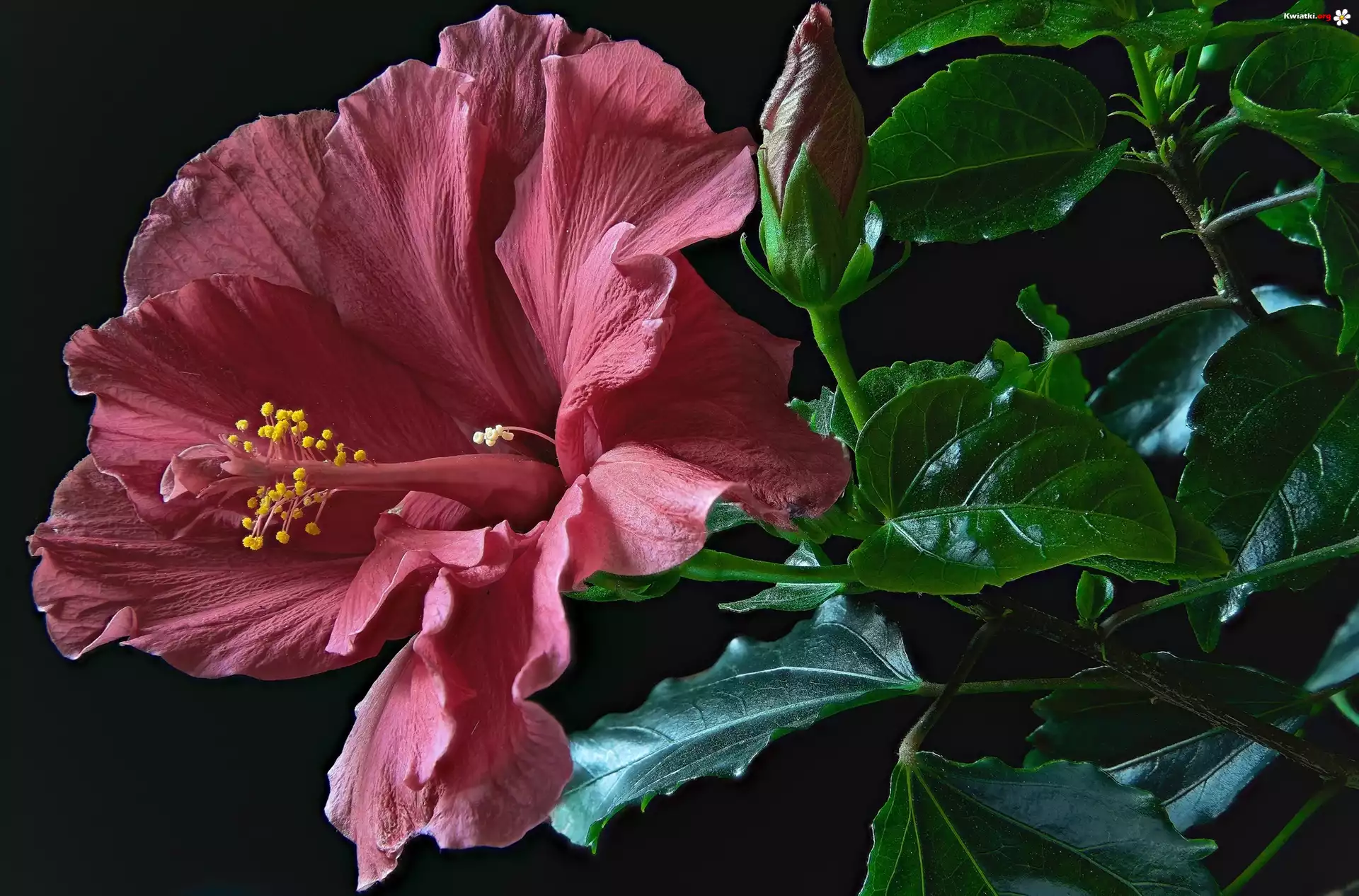 Kwiat, Hibiskus, Kielich, Pąk, Liście, Zbliżenie - Zdjęcia