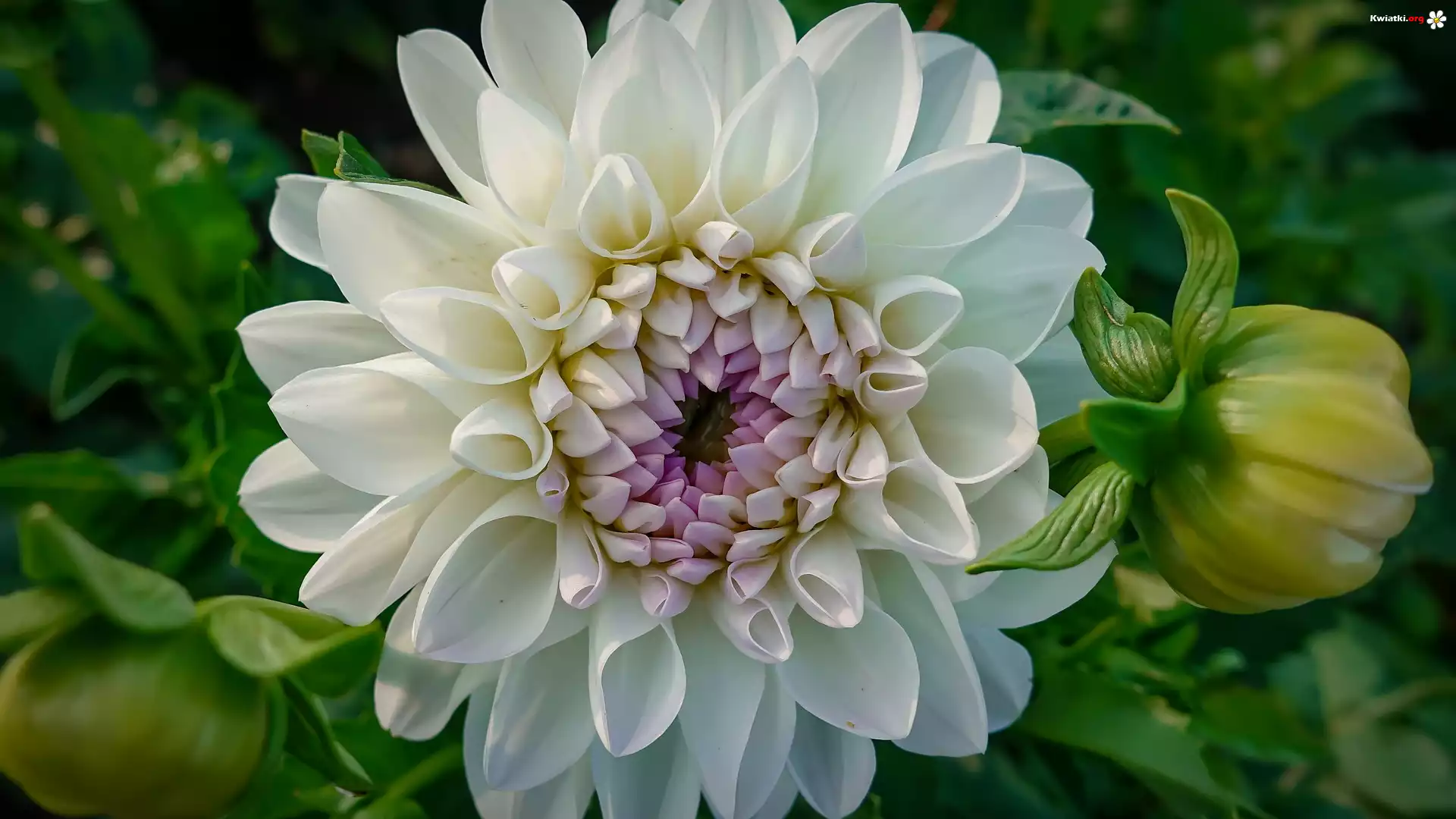 Kwiat, Białe, Płatki, Pąki, Liście, Dalia - Zdjęcia